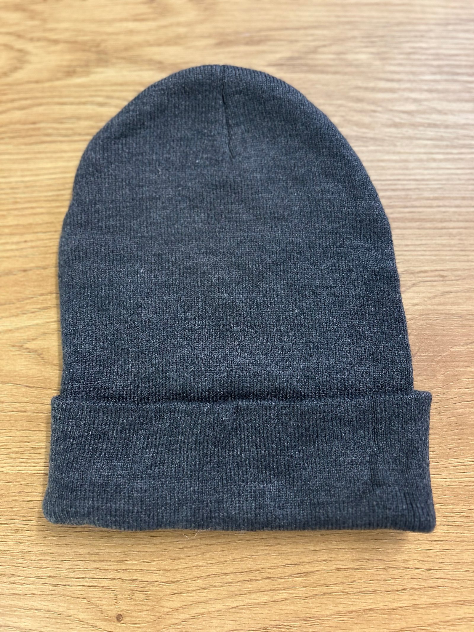 Modello beanie in tinta unita grigio con logo ricamato davanti sul rovescio