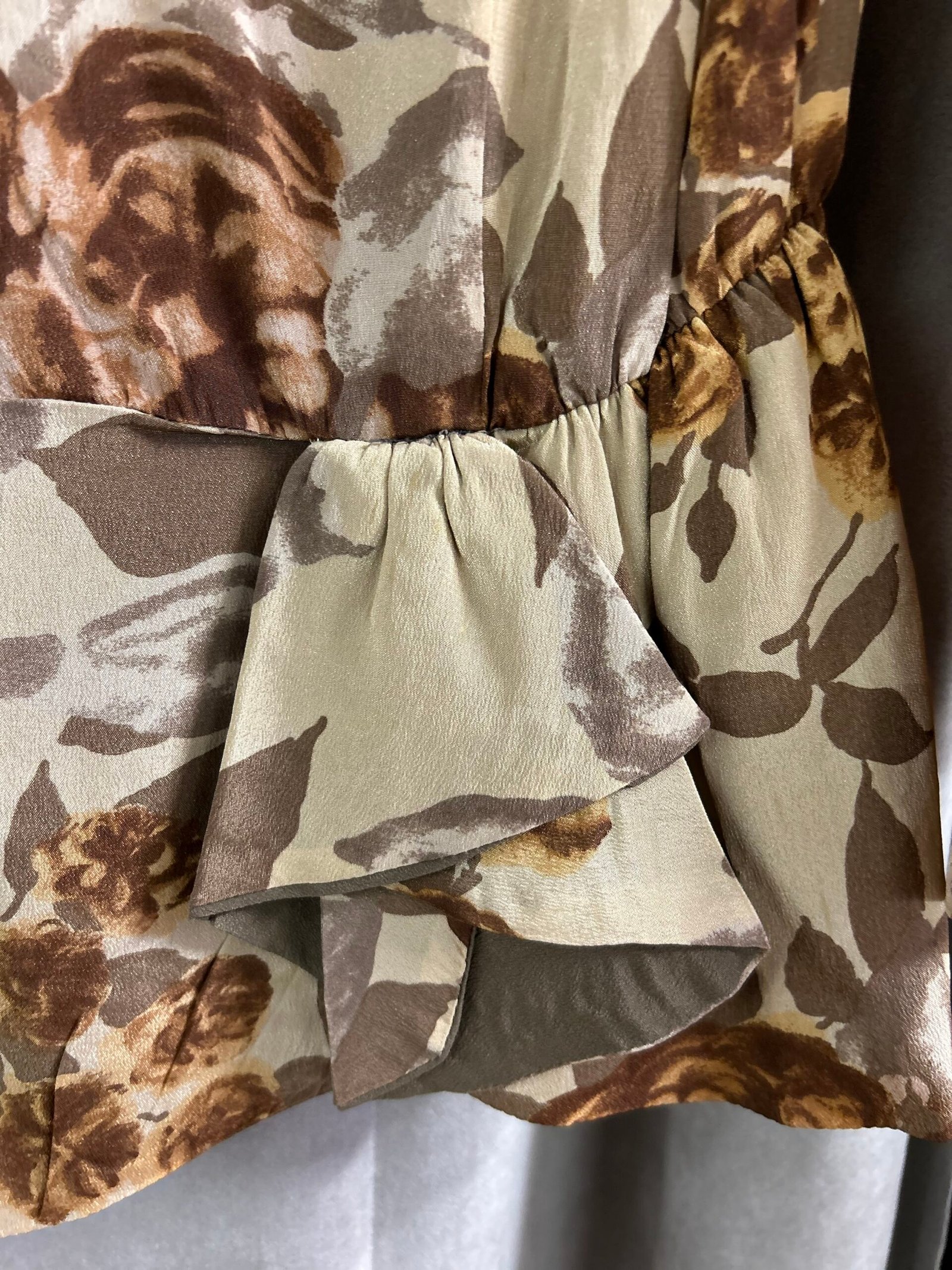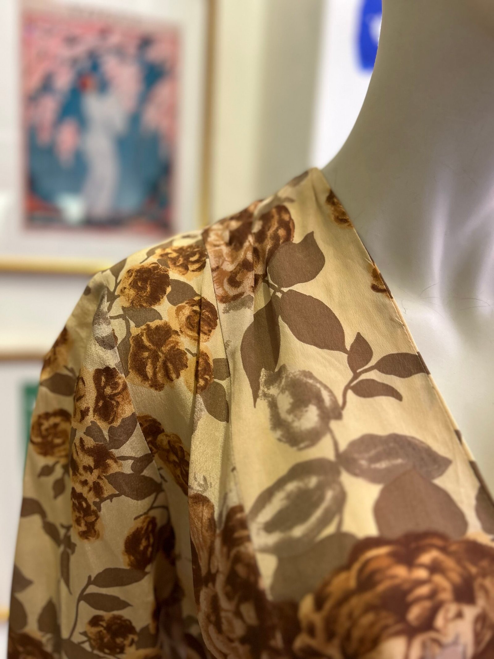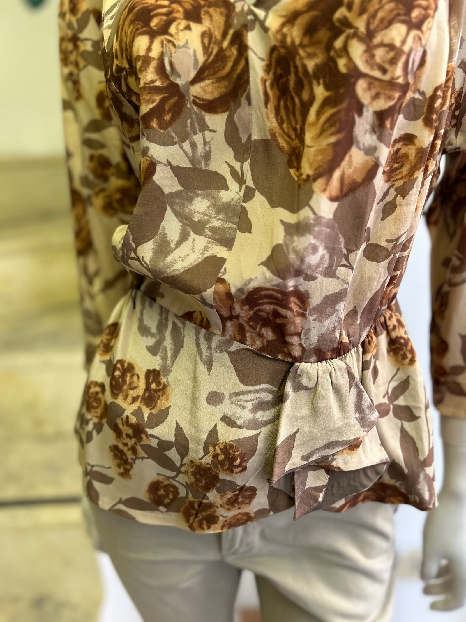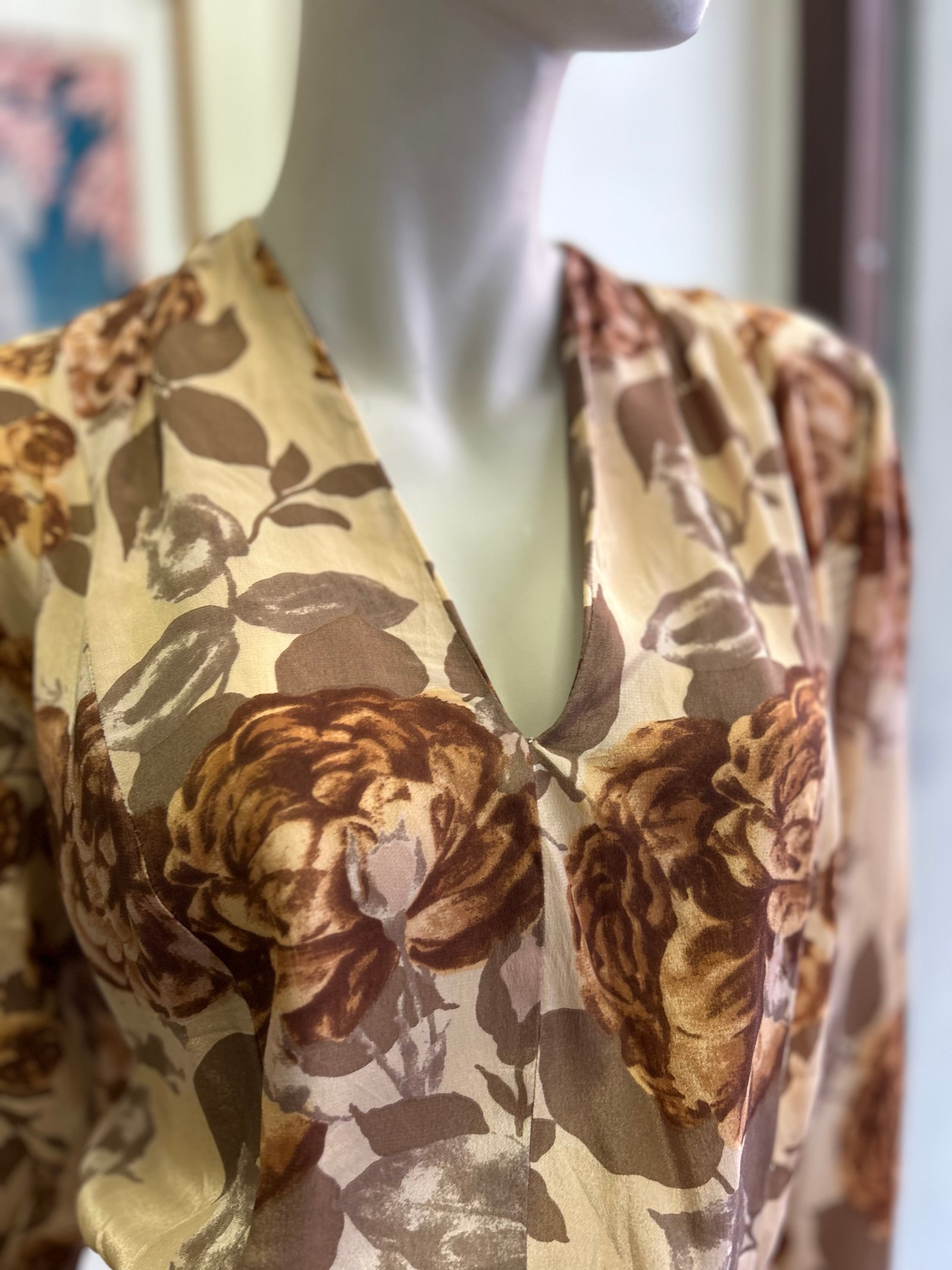 In fantasia floreale sui toni del rame e marrone, su fondo beige
