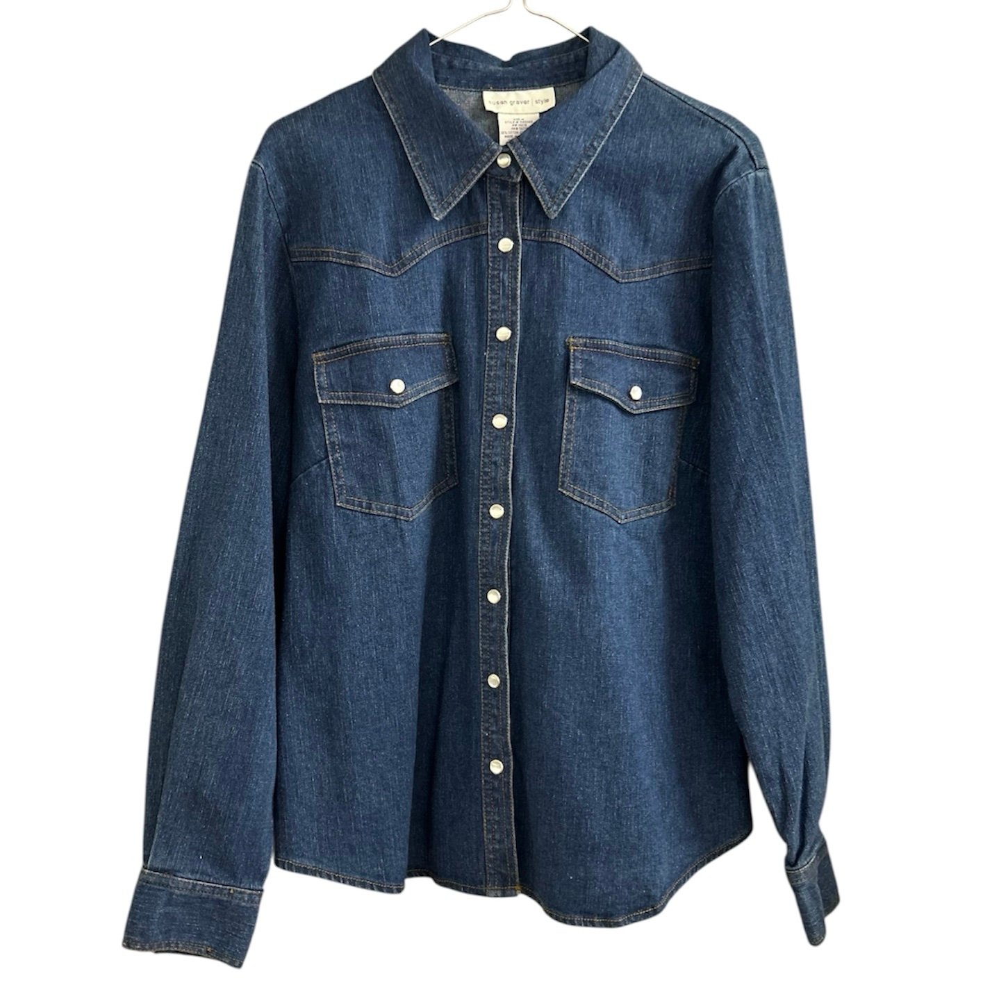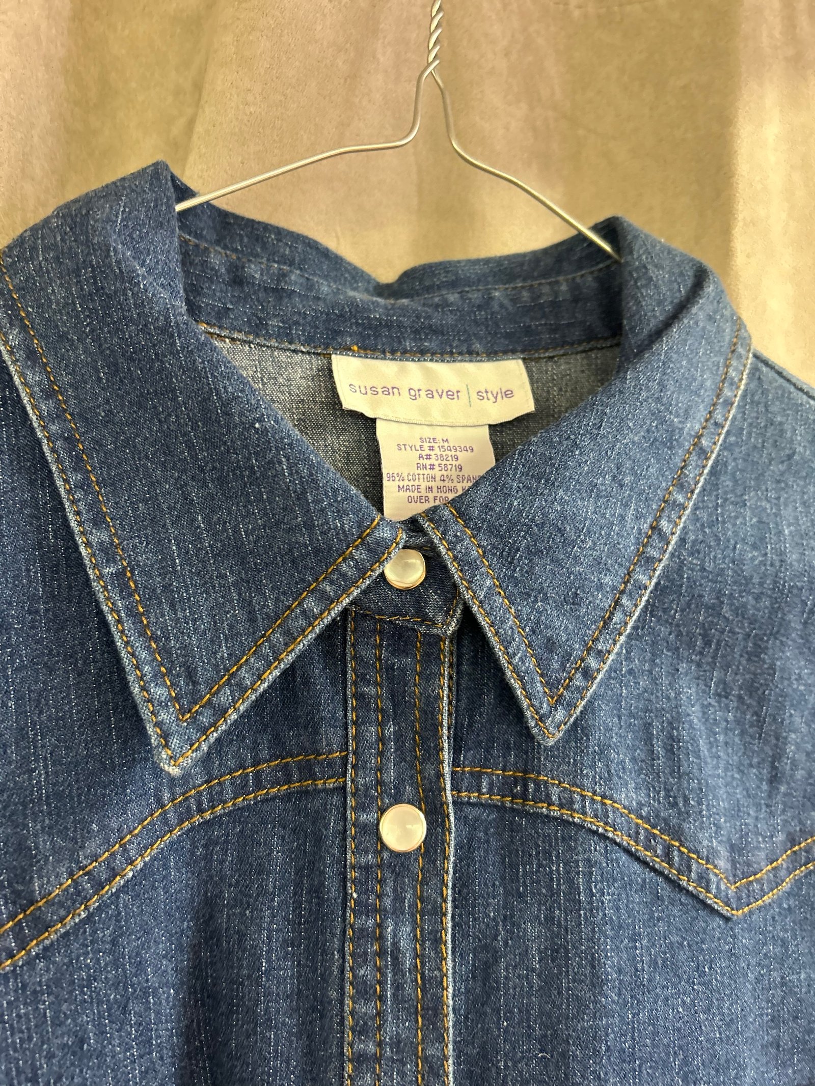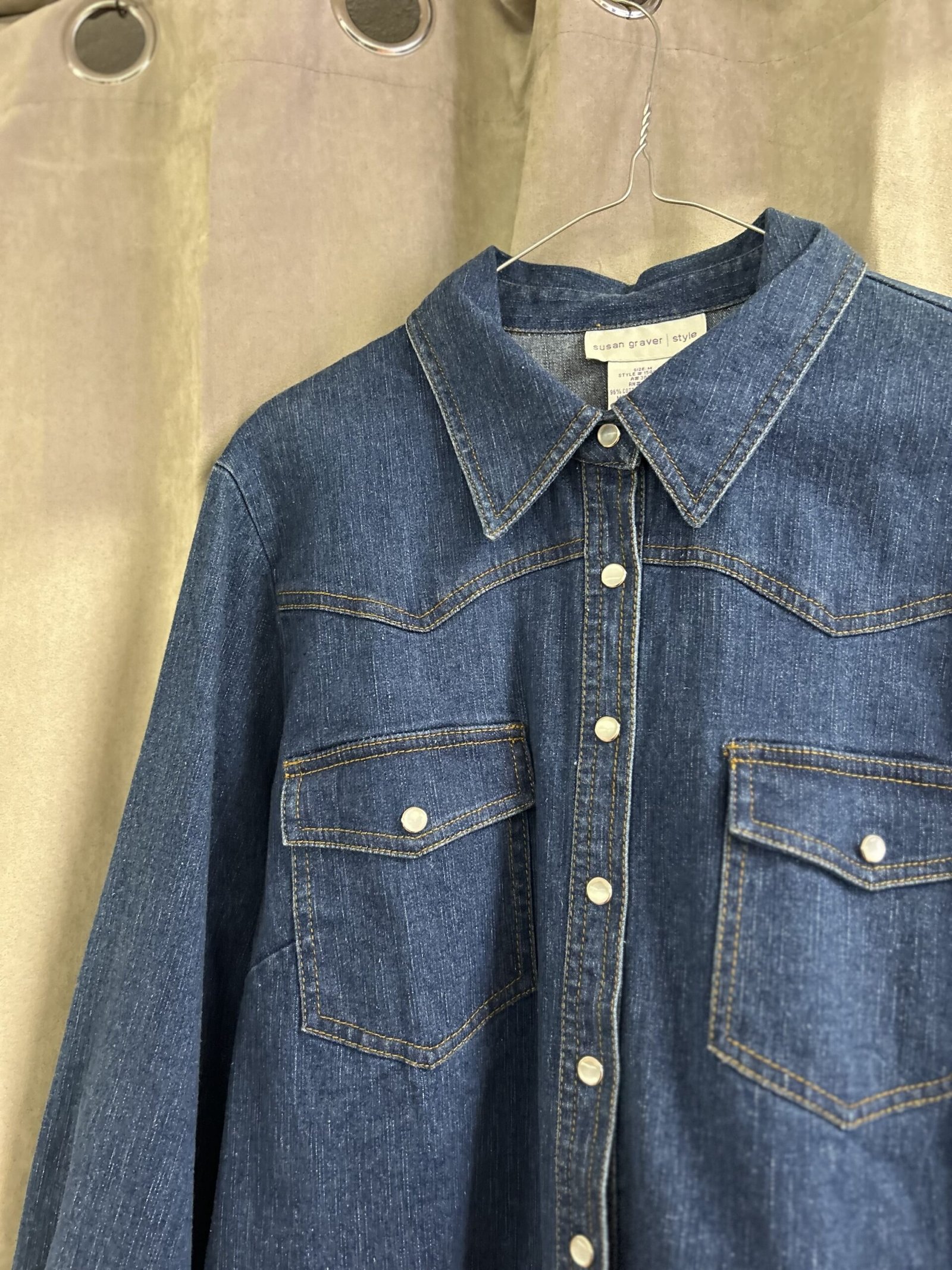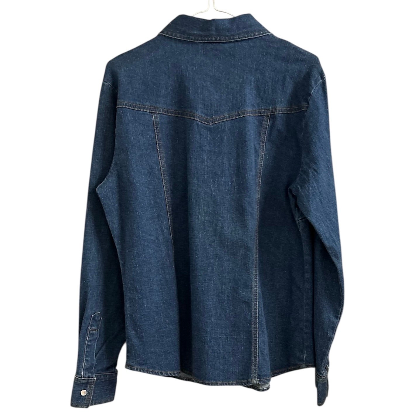 Di jeans blu, chiusura con bottoni automatici, con taschini sul petto
