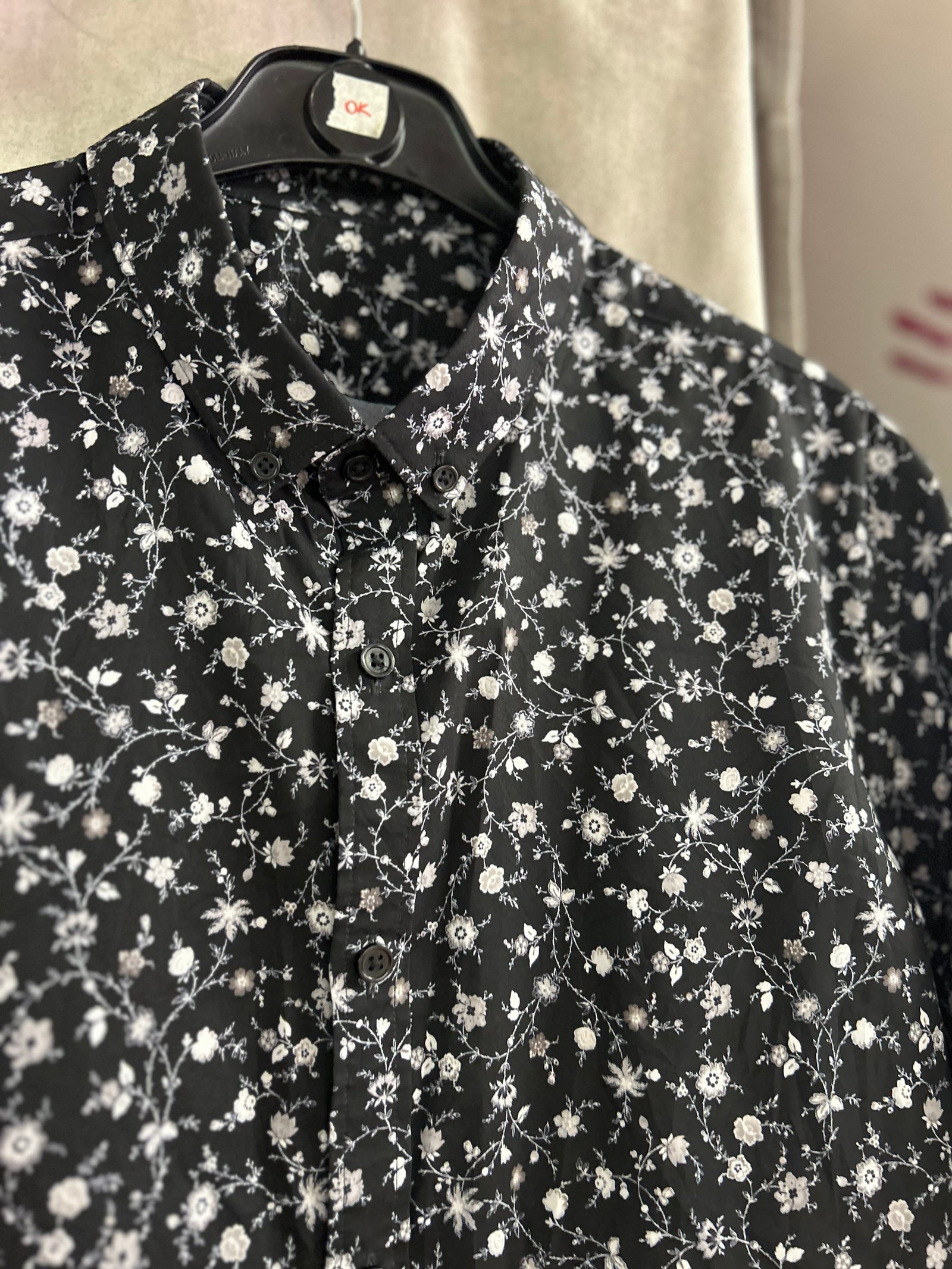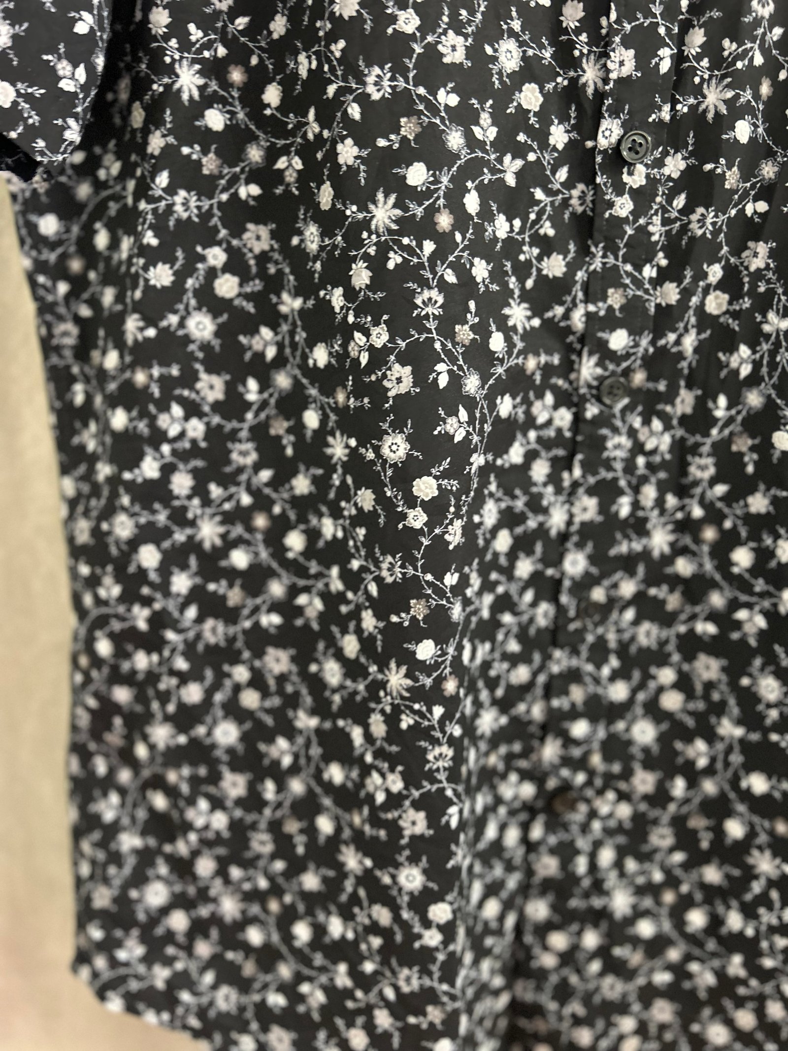In fantasia a fiorellini bianchi e grigi su fondo nero
