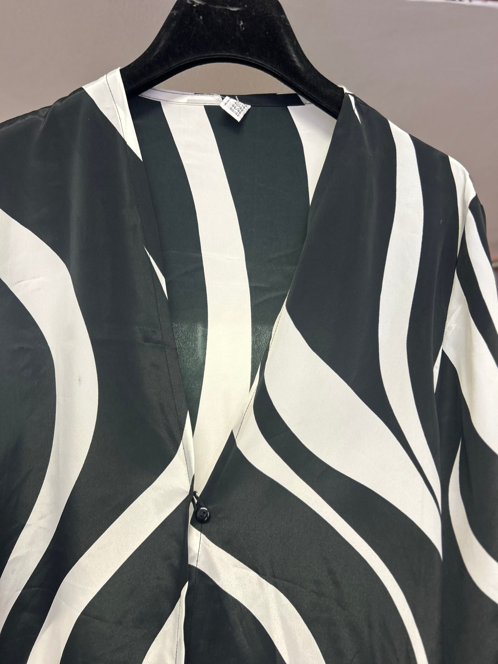 In fantasia bianca e nera con un bottone, e spacchi laterali