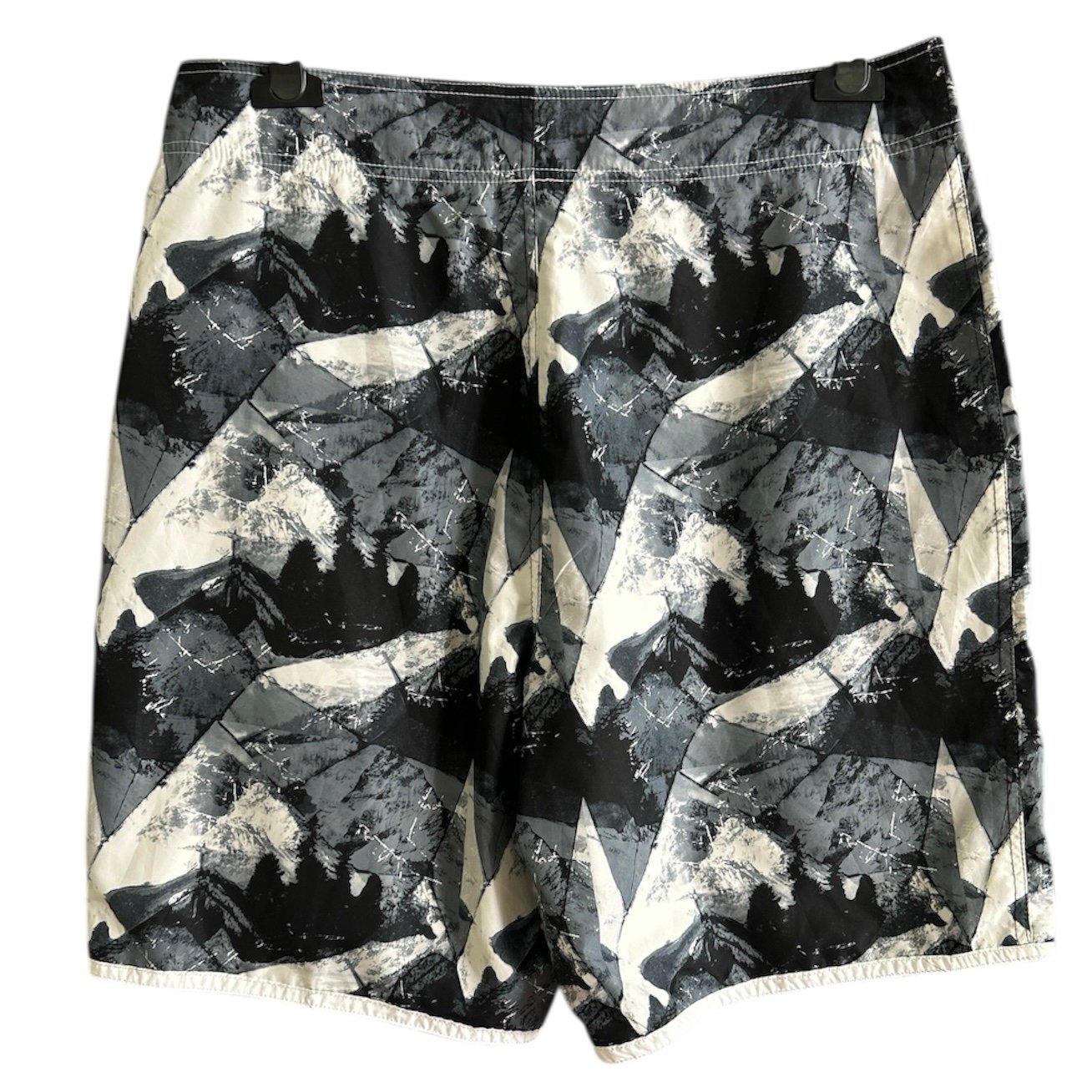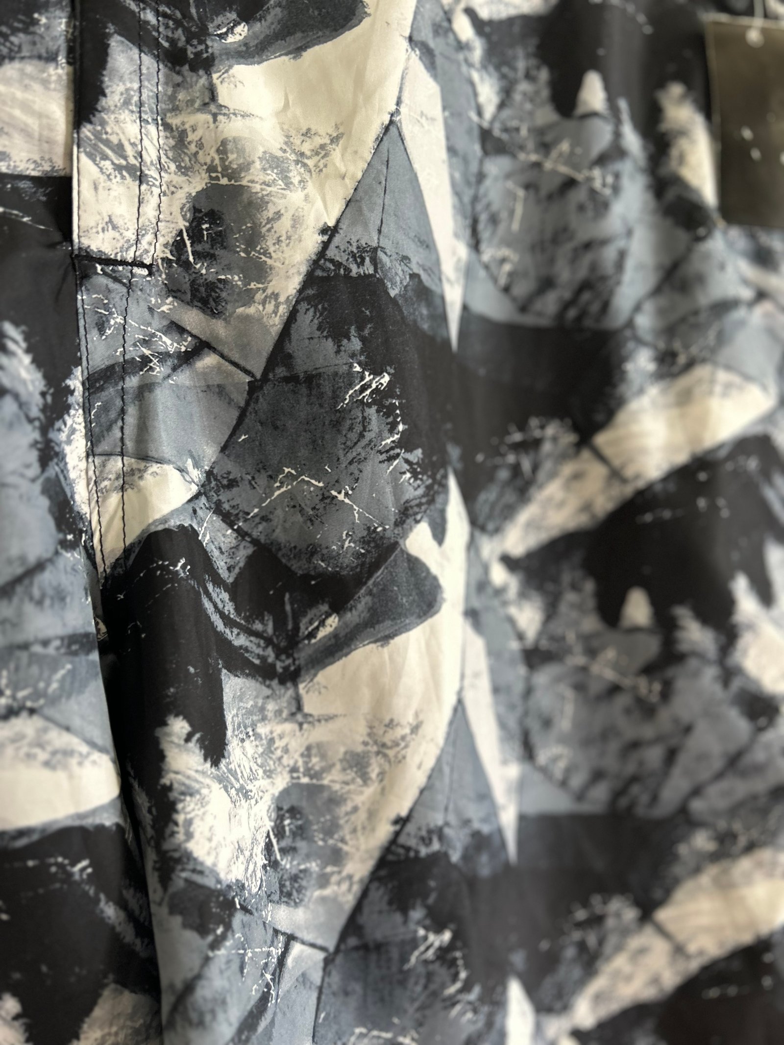 Fascia in vita, chiusura con bottoni e velcro, in fantasia bianca nera e grigia, con tasca interna posteriore