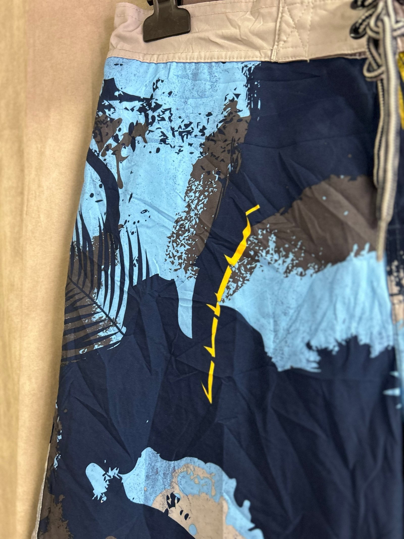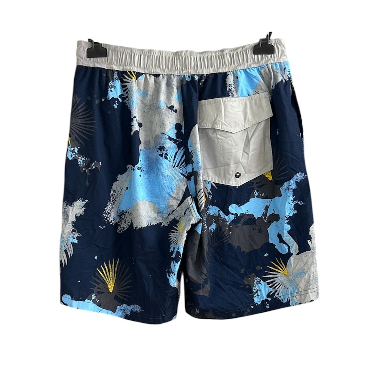 In fantasia sui toni del grigio e celeste su fondo blu, fascia in vita grigia con elastico dietro e lacci davanti