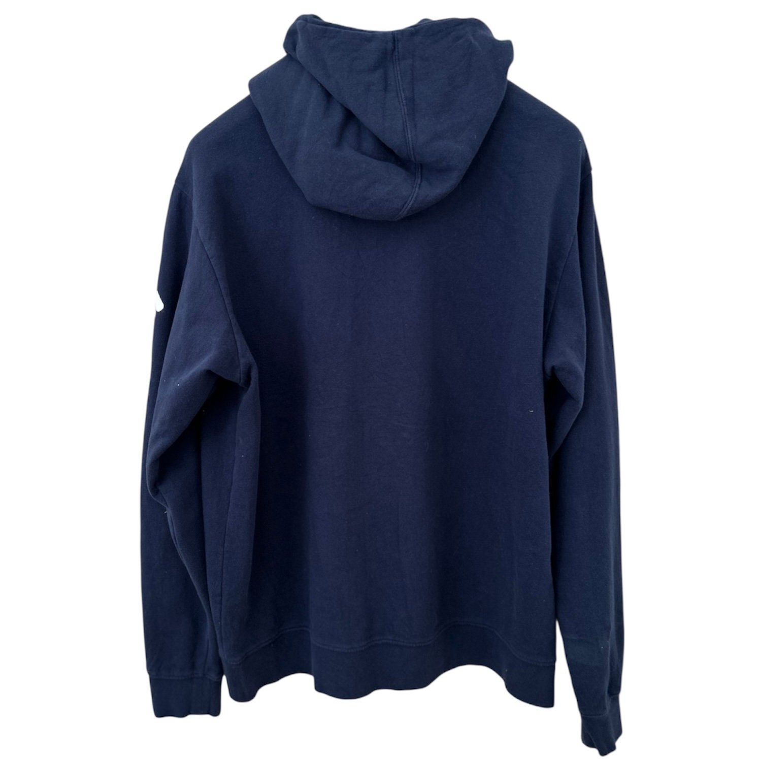Modello chiuso, con cappuccio e tasca centrale, blu con logo sul petto e sulla manica sinistra