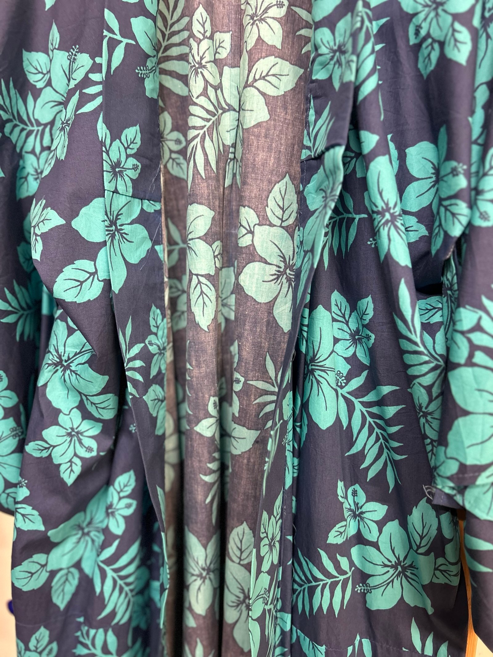 in fantasia con fiori hawaiani azzurri su fondo carta da zucchero.