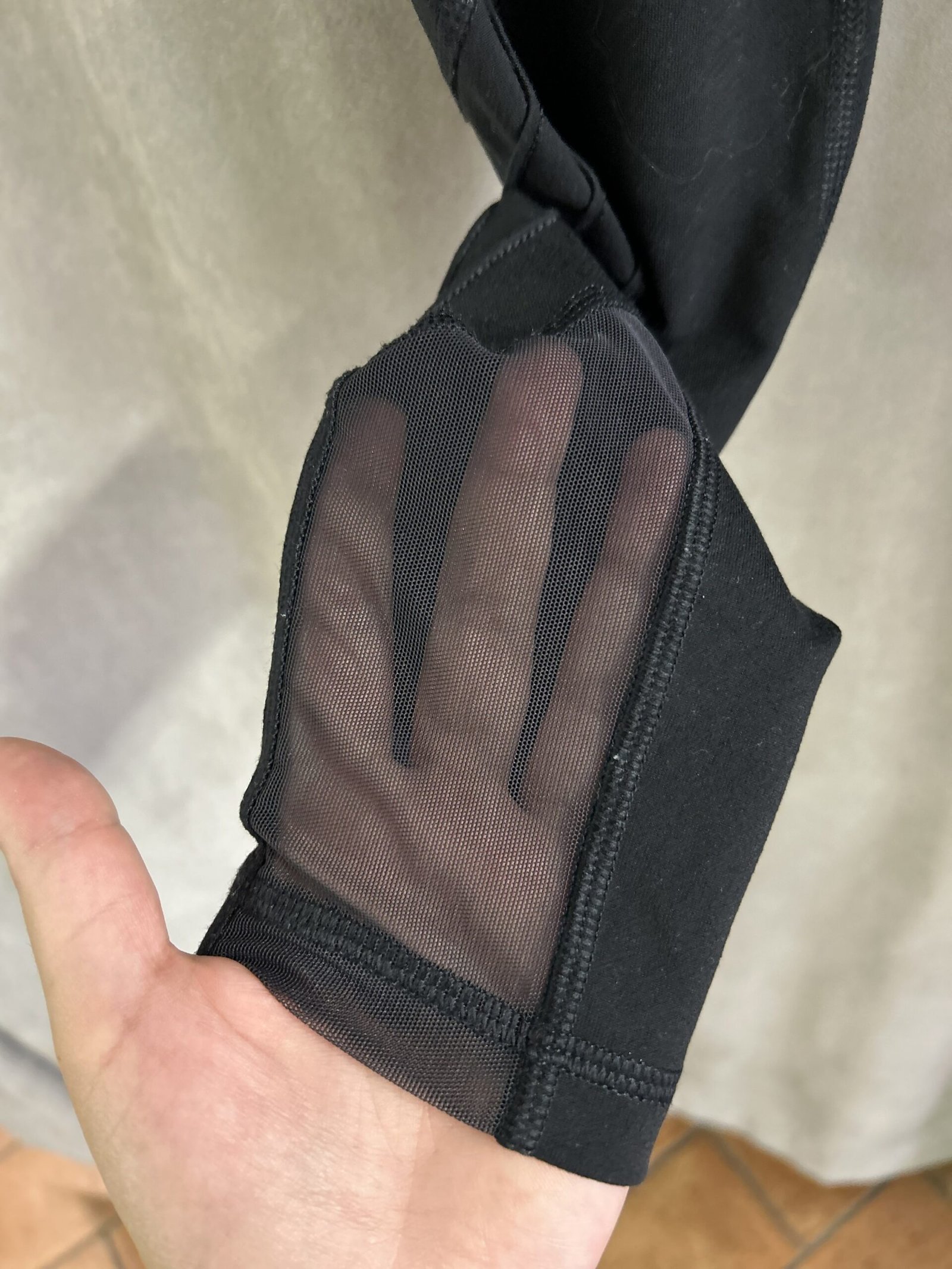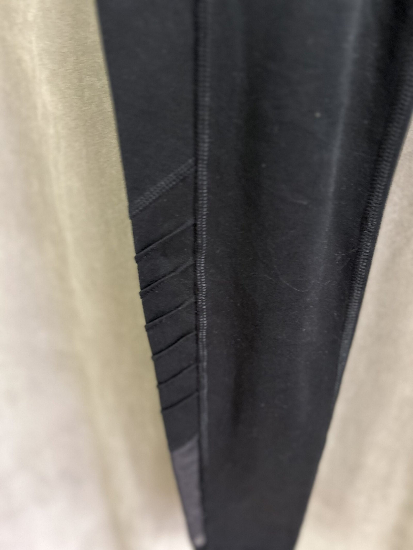 In tinta unita nera con lavorazioni pieghettate e inserto trasparente alla caviglia, con fascia alta in vita