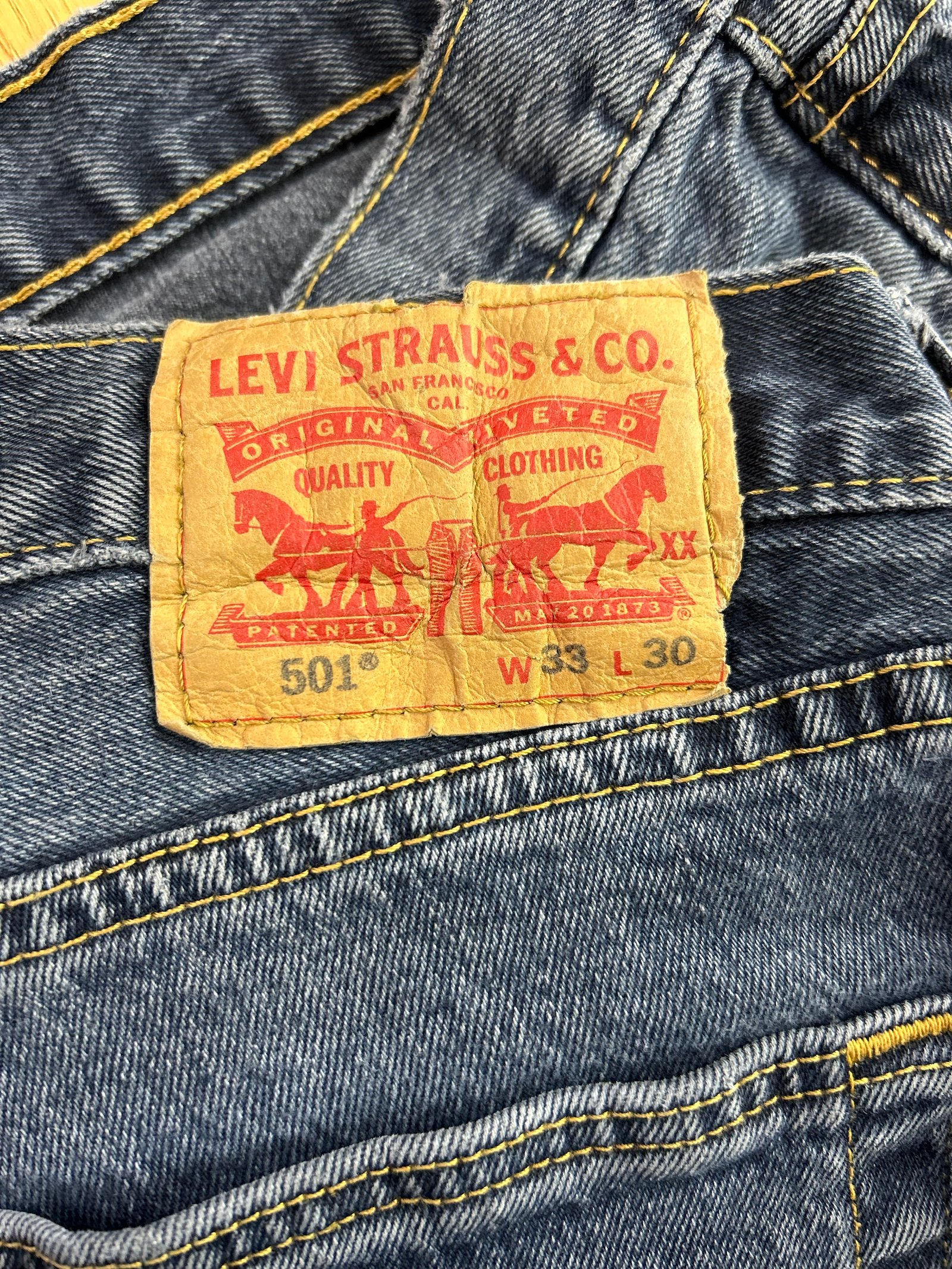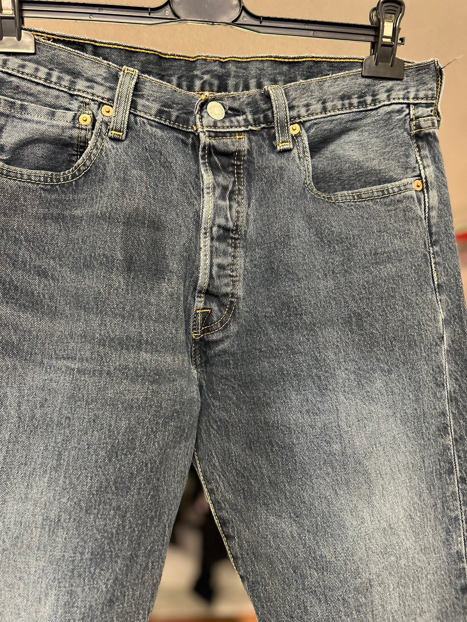 Iconico modello 501, riportano taglia W33 L30, in 100% cotone