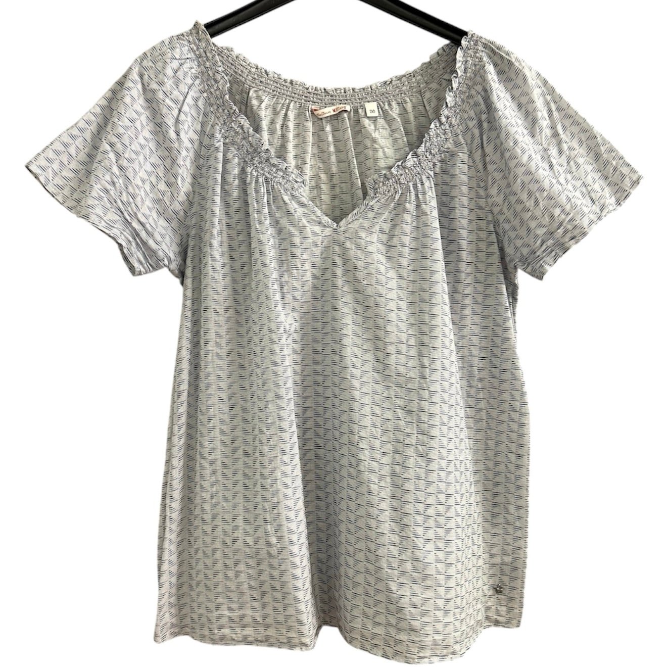 Riporta taglia 36, indicativamente L, in 100% cotone