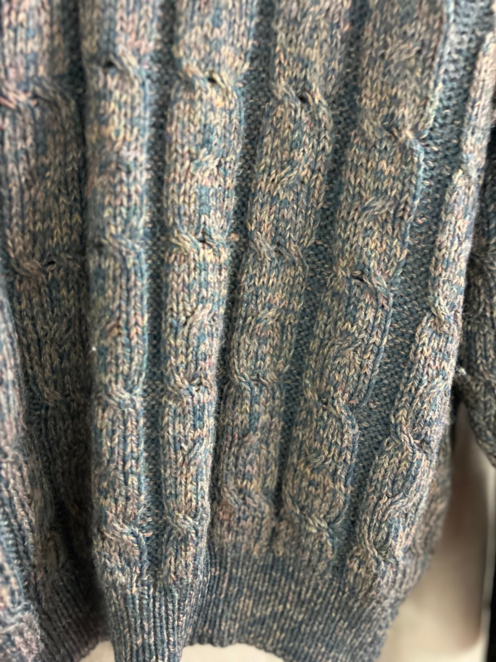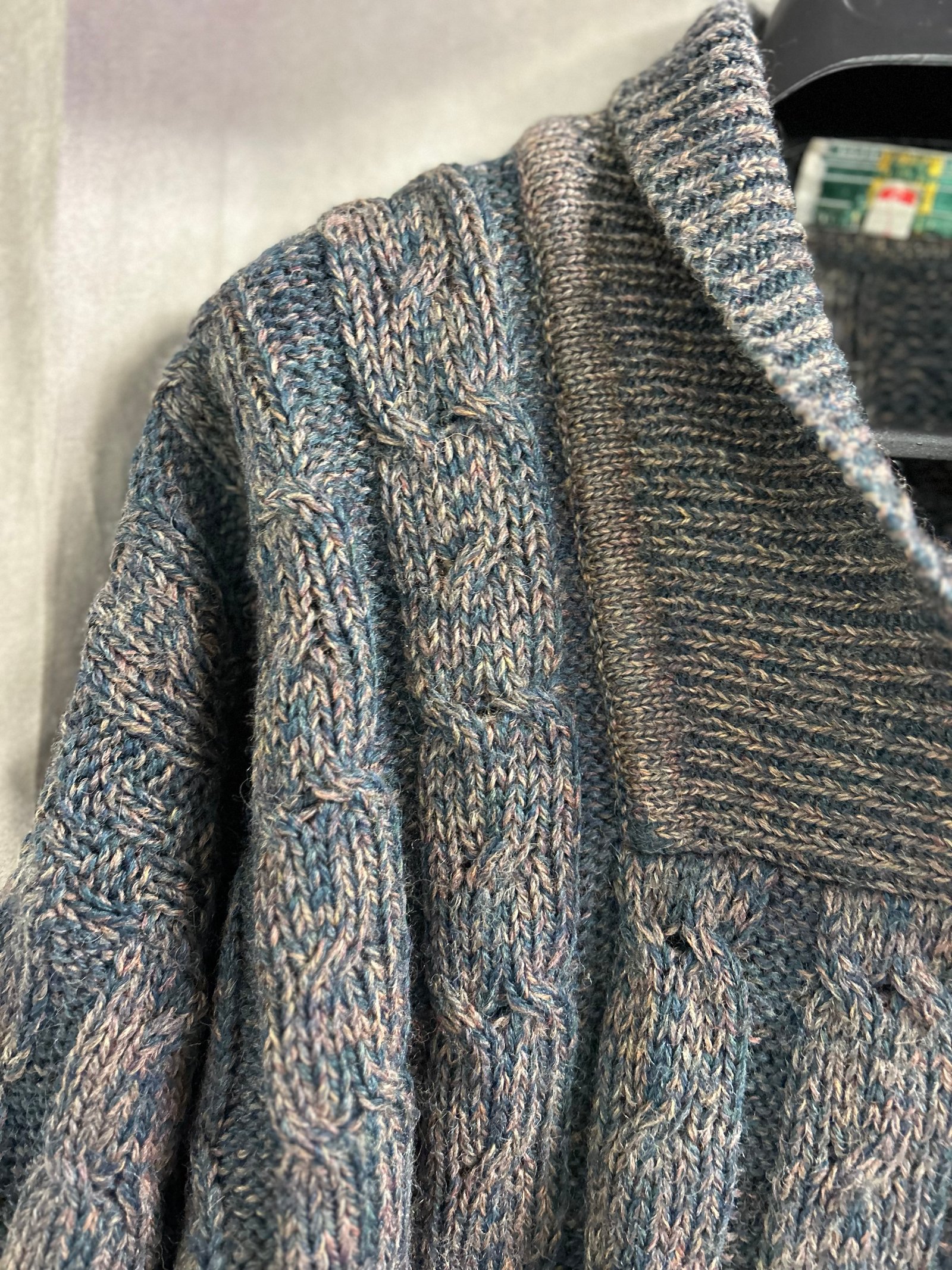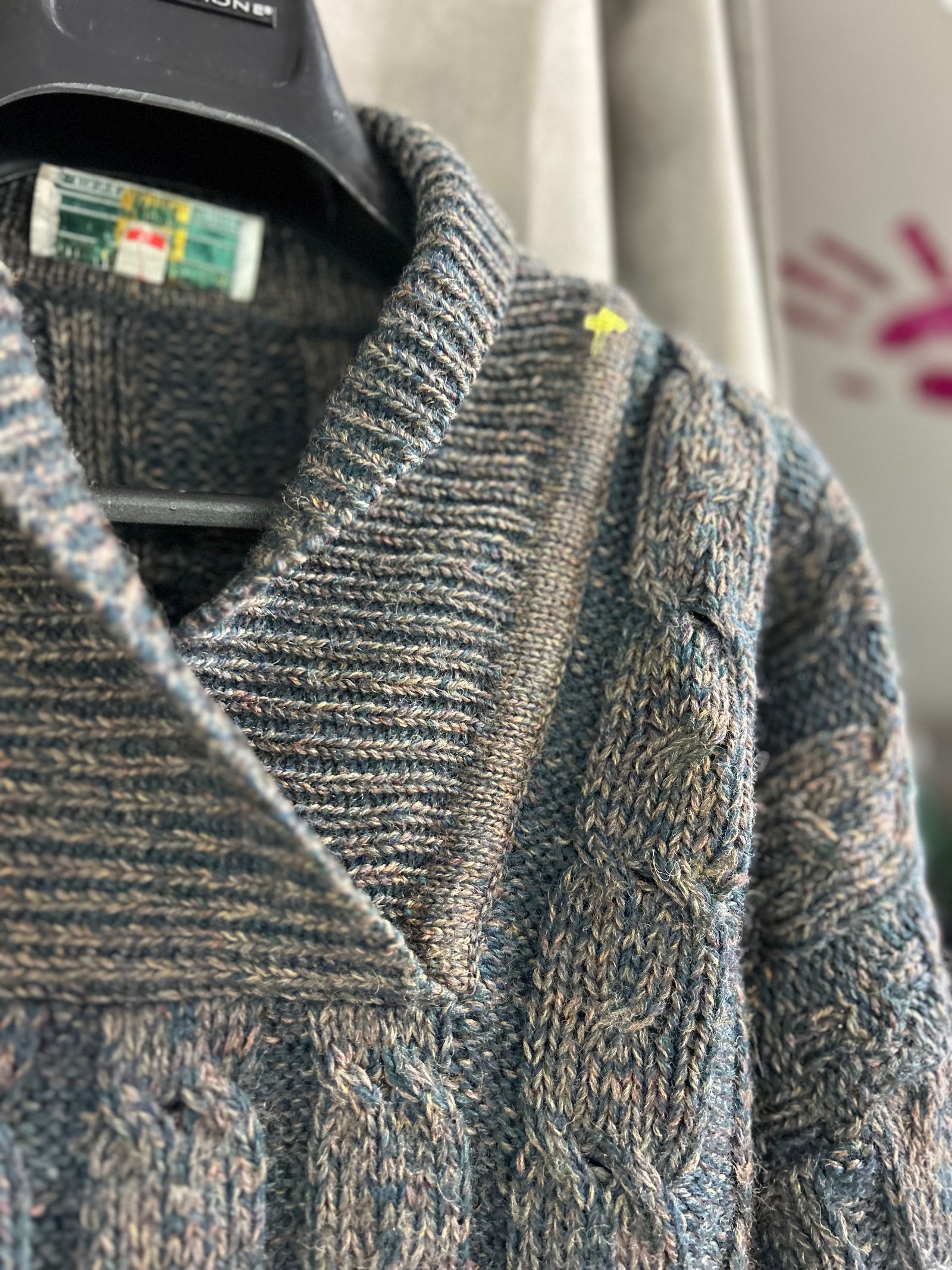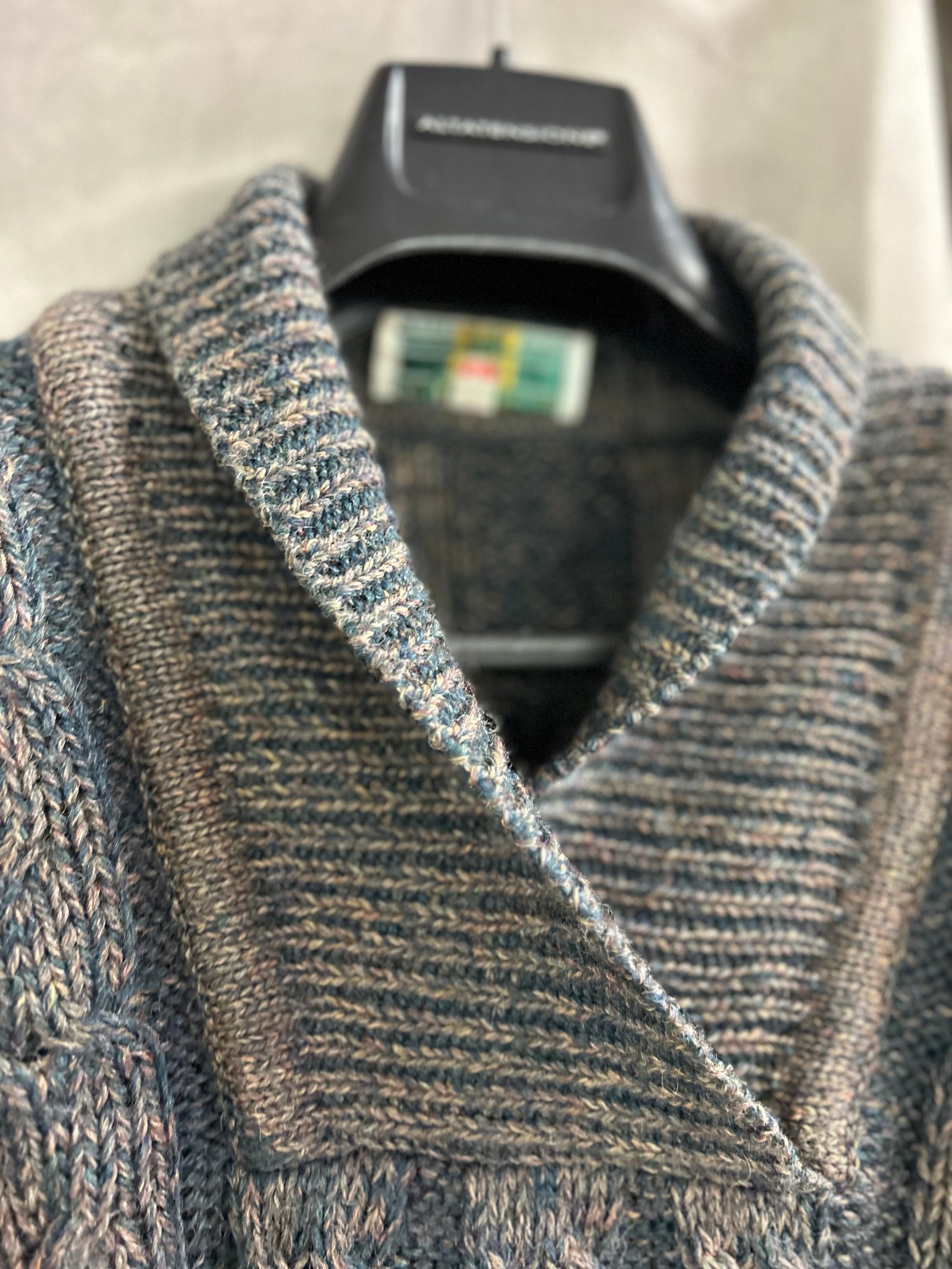 Modello con collo a V regolabile, si può portare rigirato tipo Polo o alto, in fantasia verde e rosa/beige melangiato