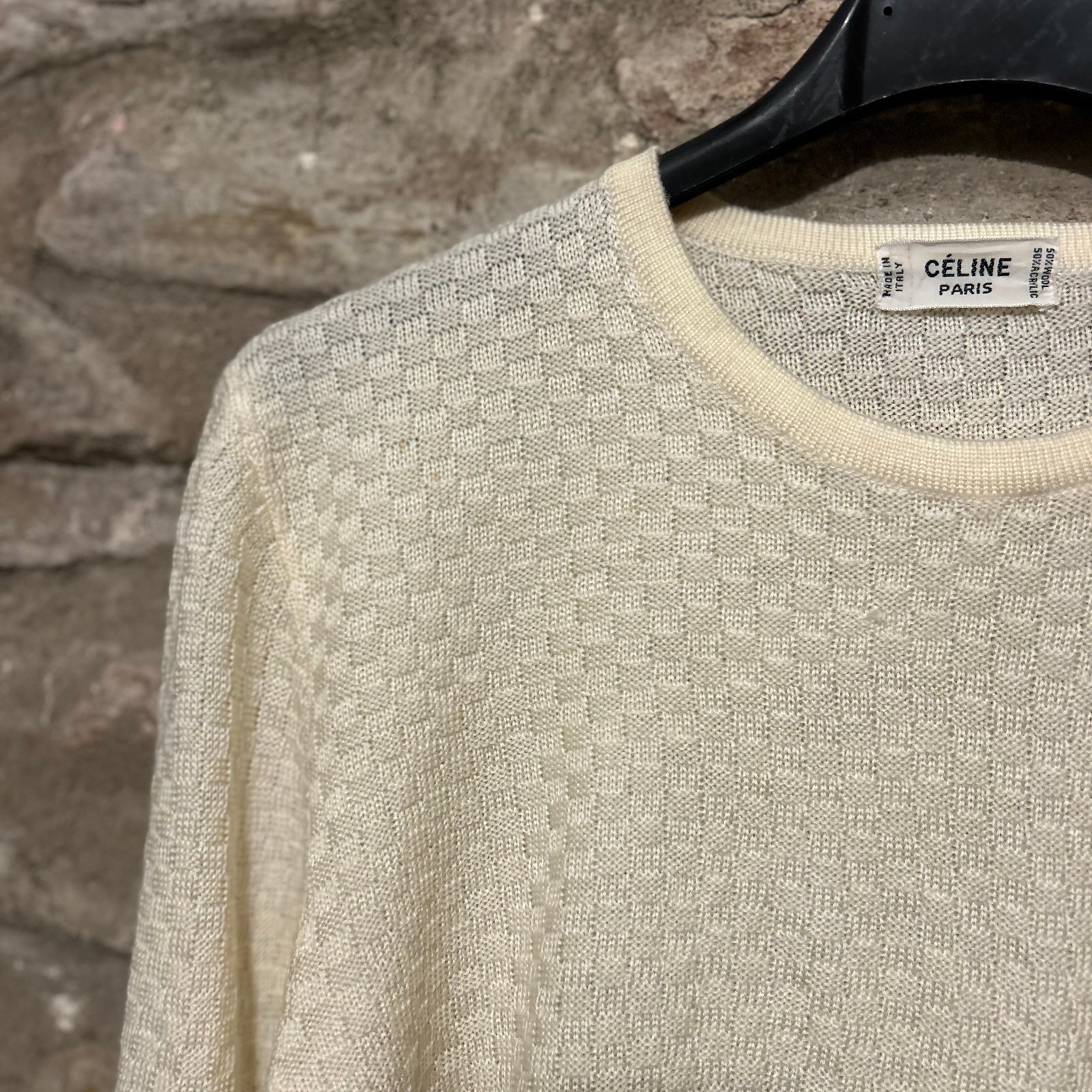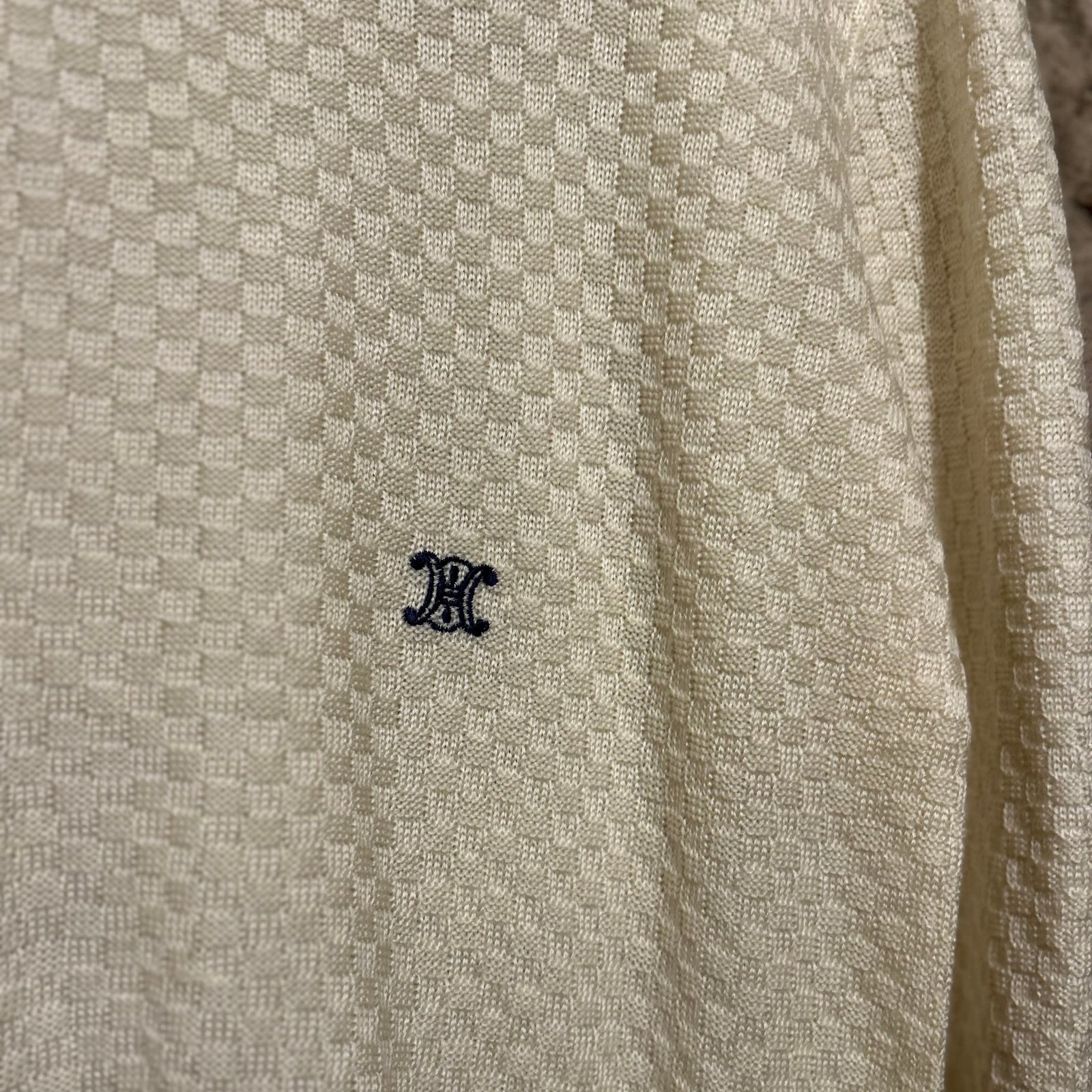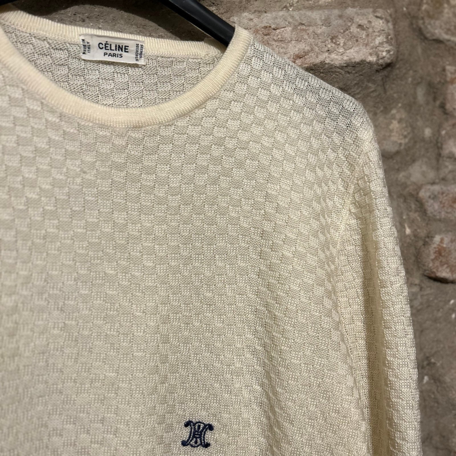 In tinta unita panna, con lavorazione a quadrettini, e iconico logo blu sul petto