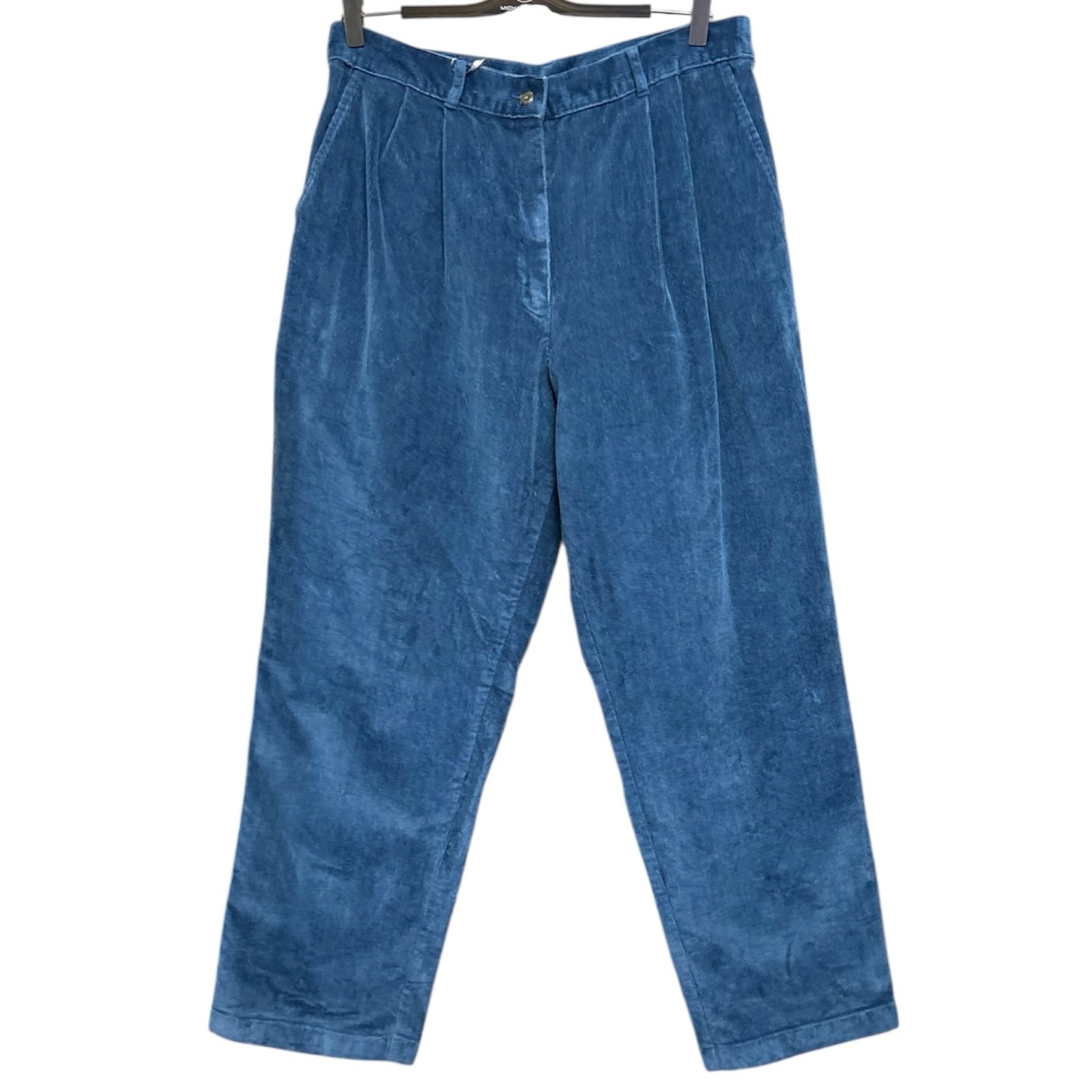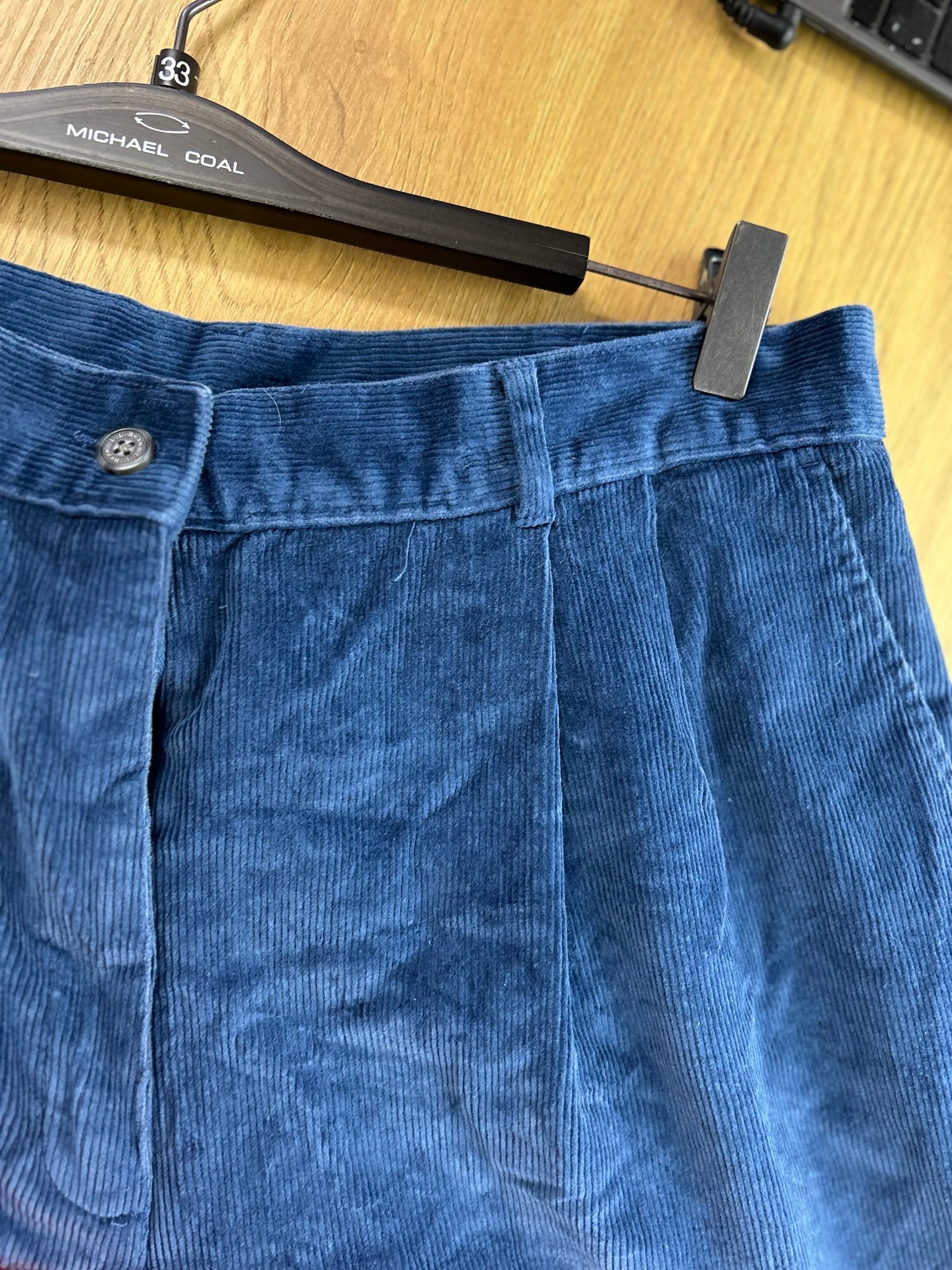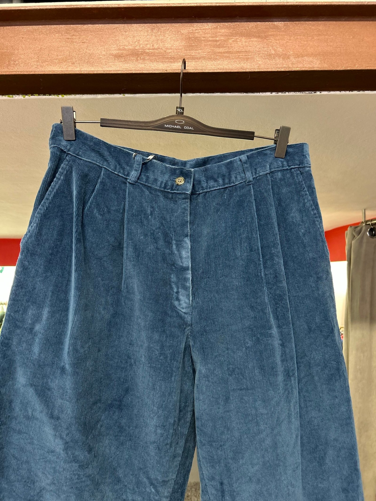 Modello classico, con pences e tasche a filetto e gamba morbida, in tinta unita celeste scuro
