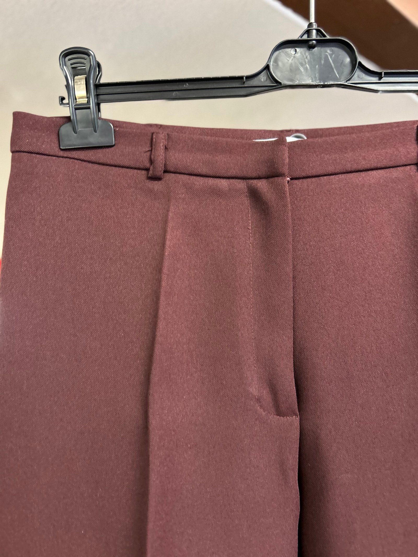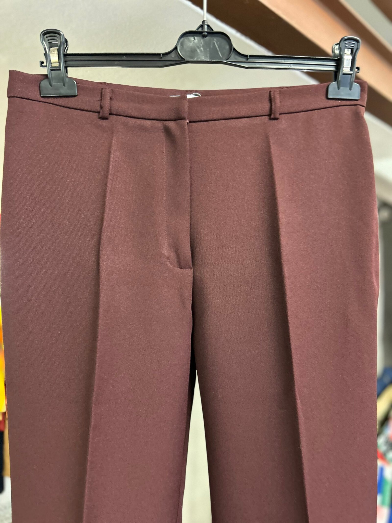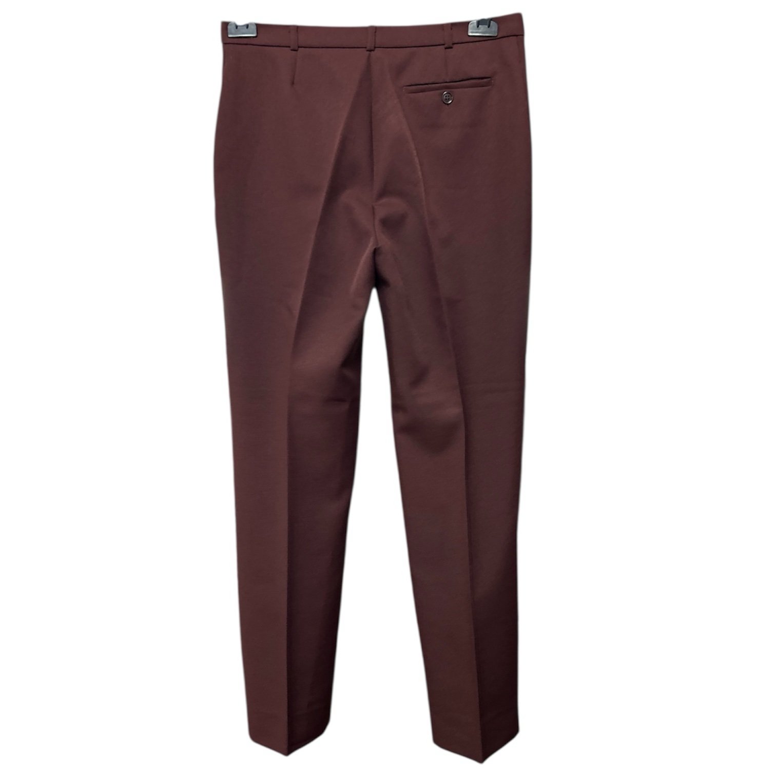 Modello classico senza tasche, con sola tasca posteriore, gamba con piega, in tinta unita color vinaccia
