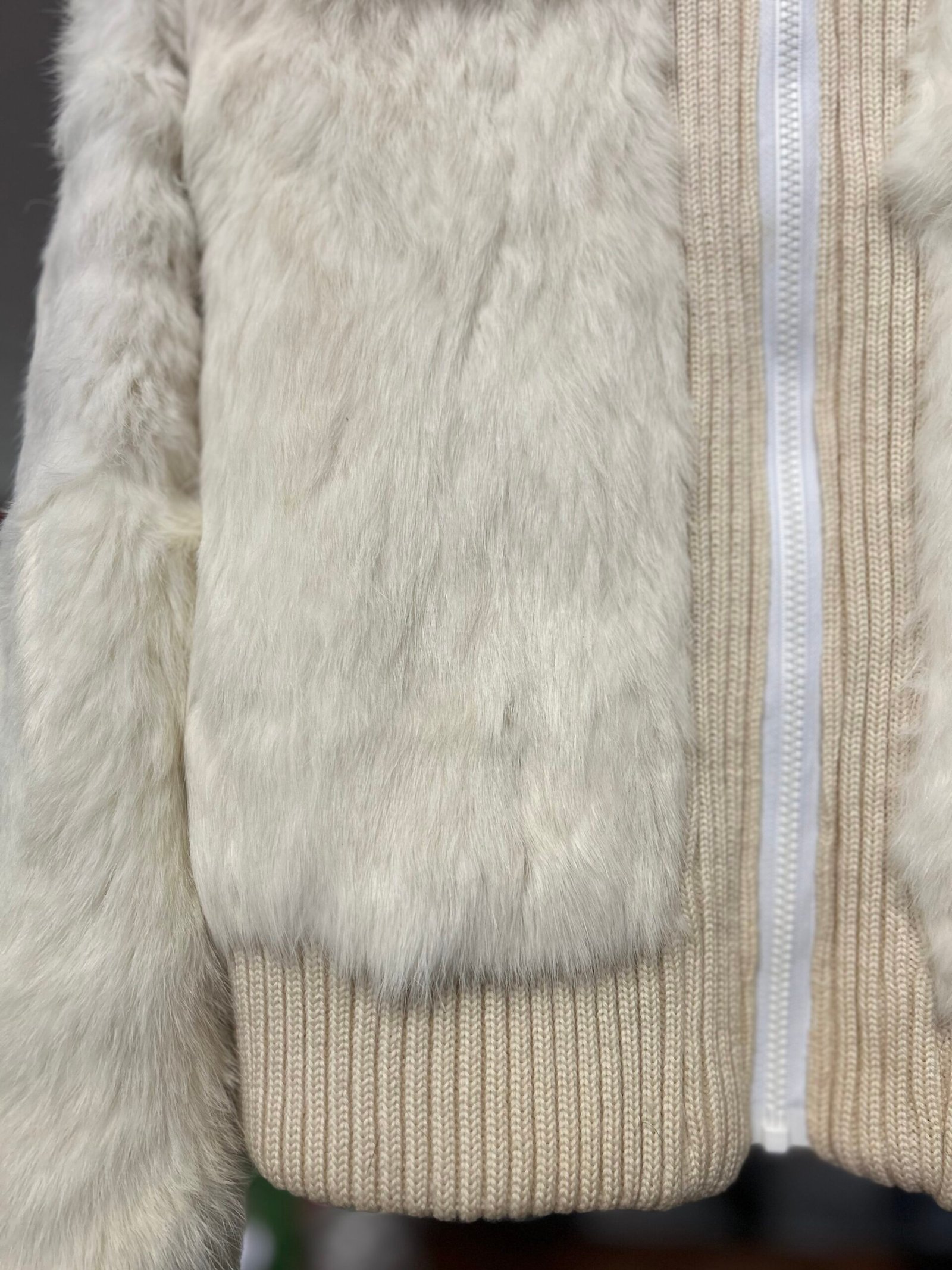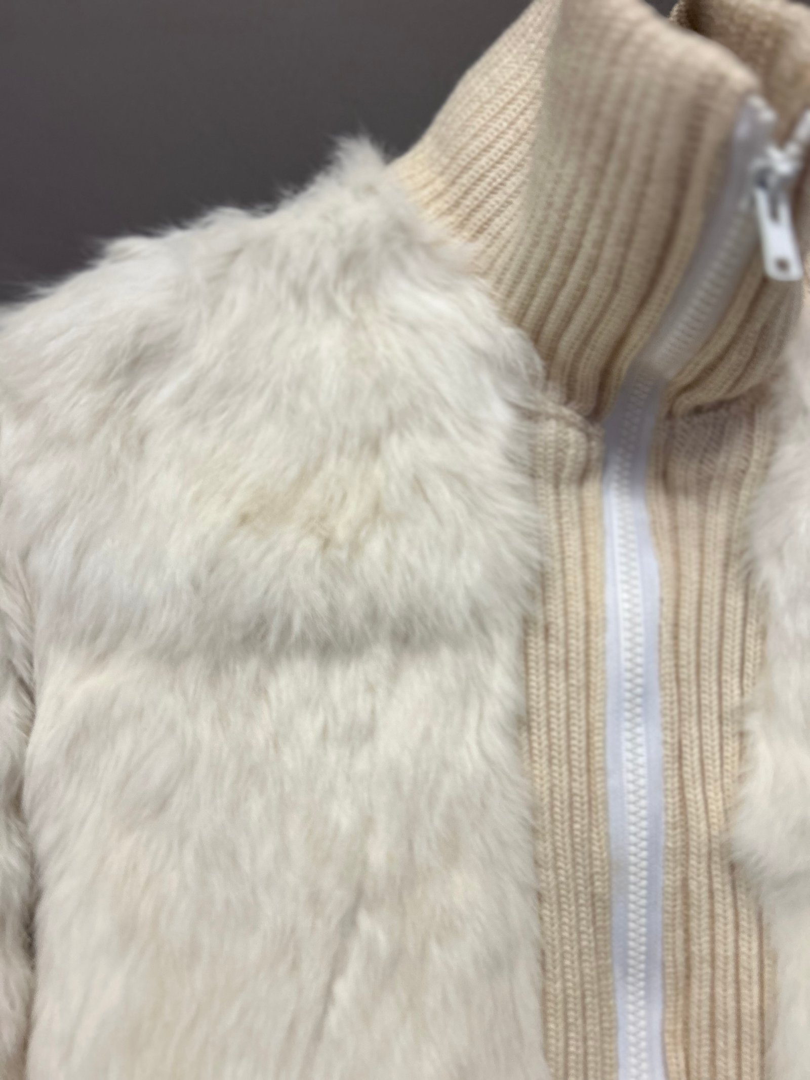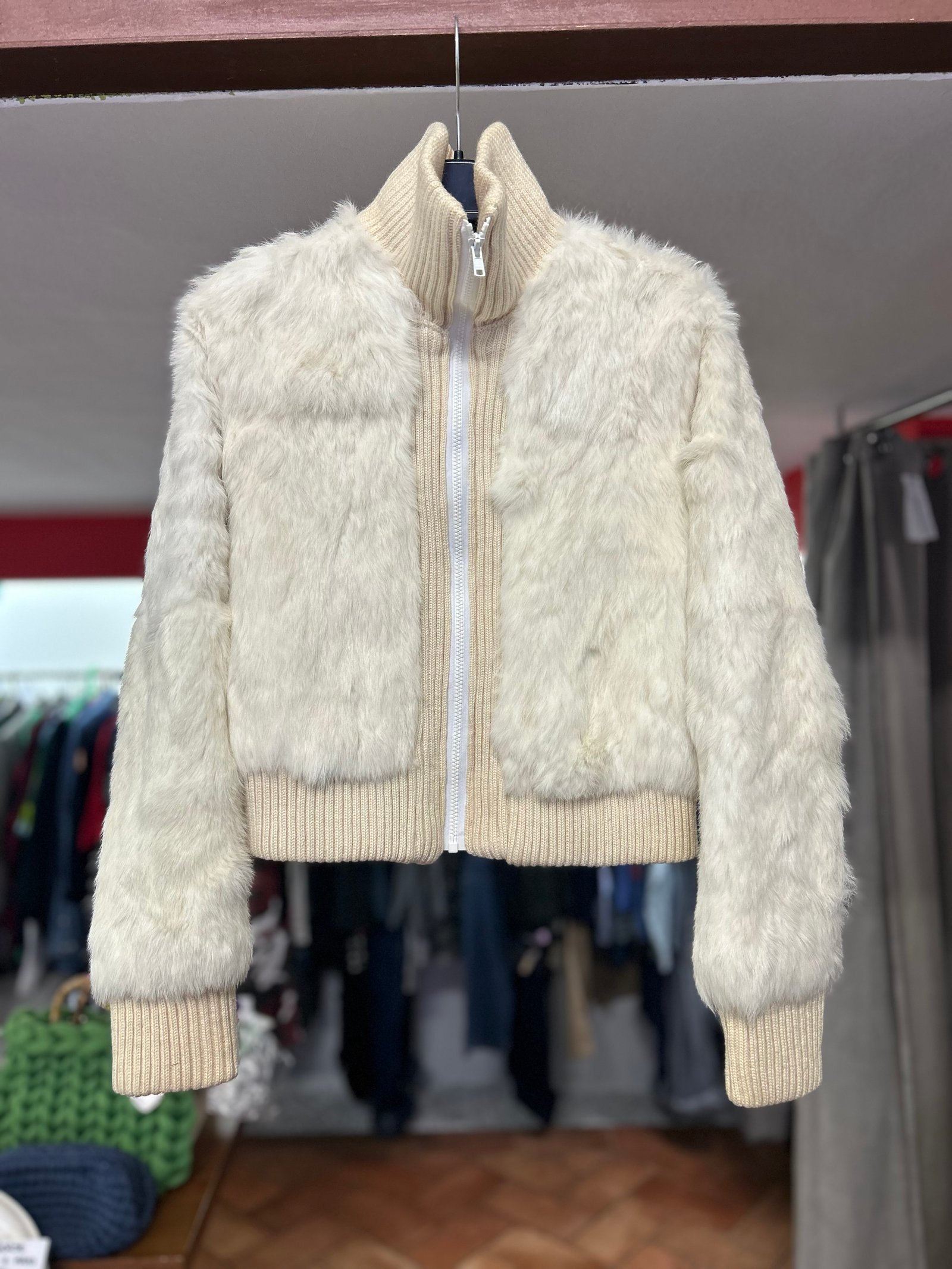 Modello a bomber con inserti in maglia su collo, zip e polsini