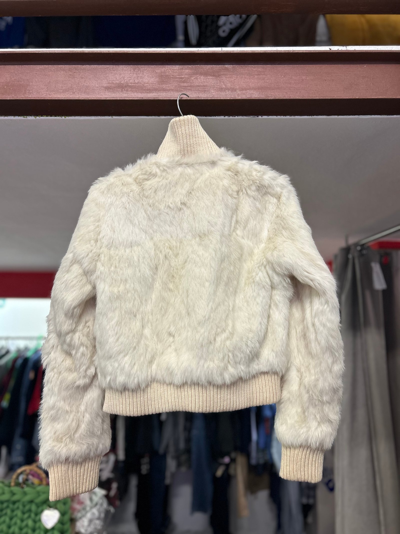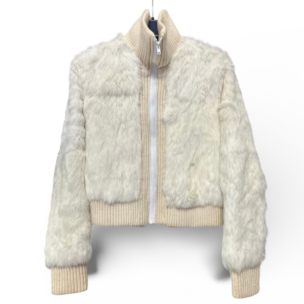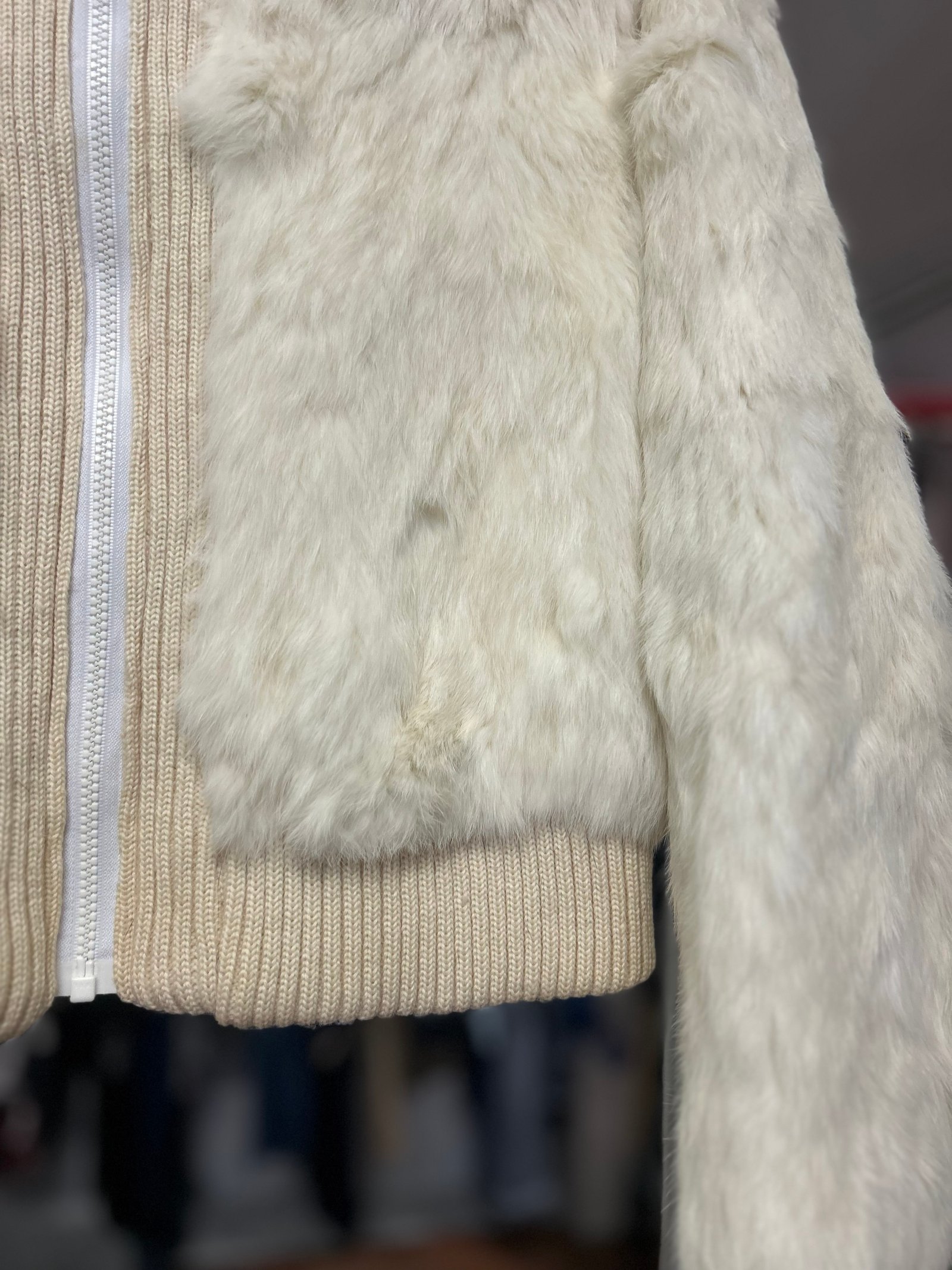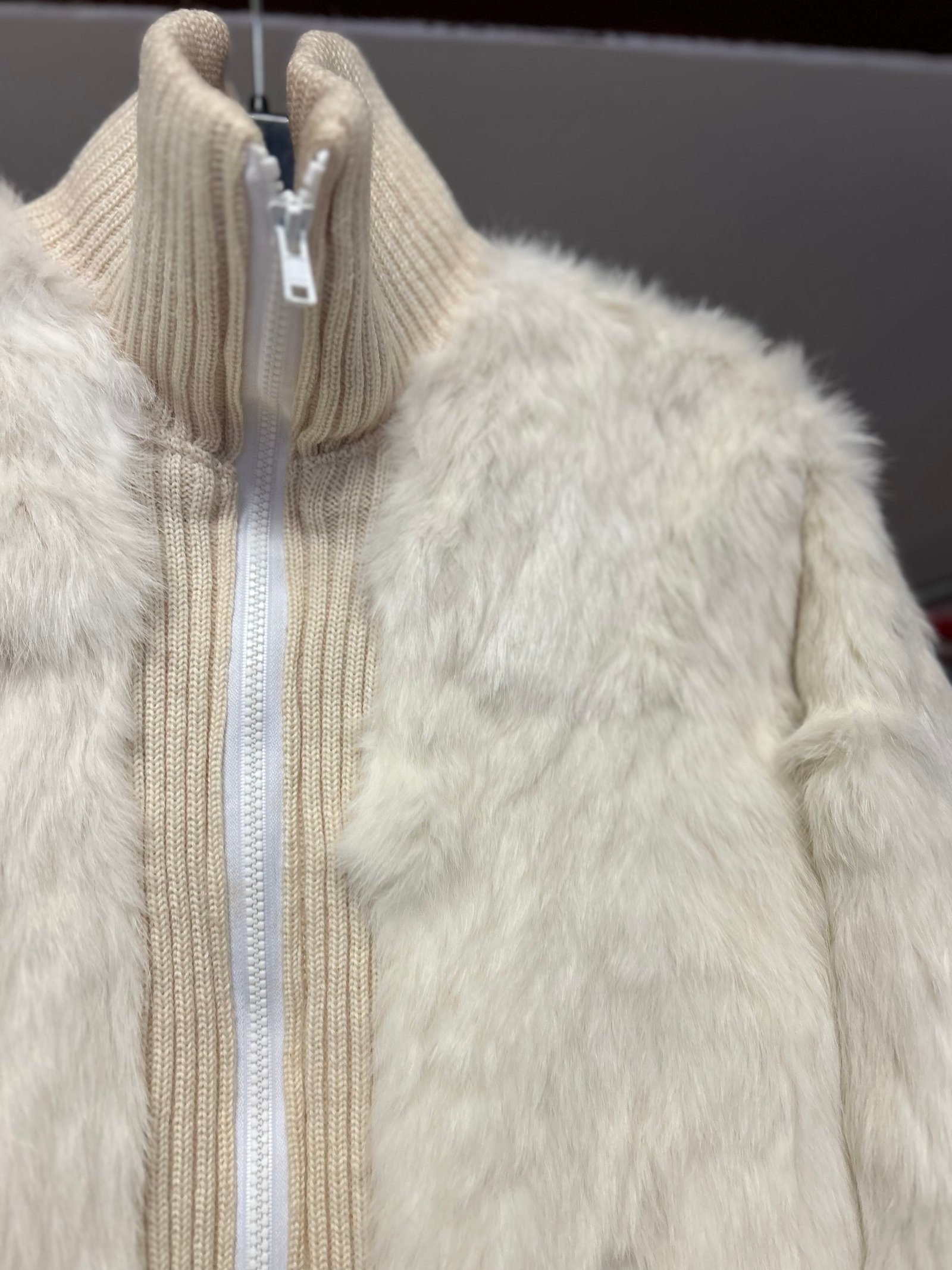 Modello a bomber con inserti in maglia su collo, zip e polsini