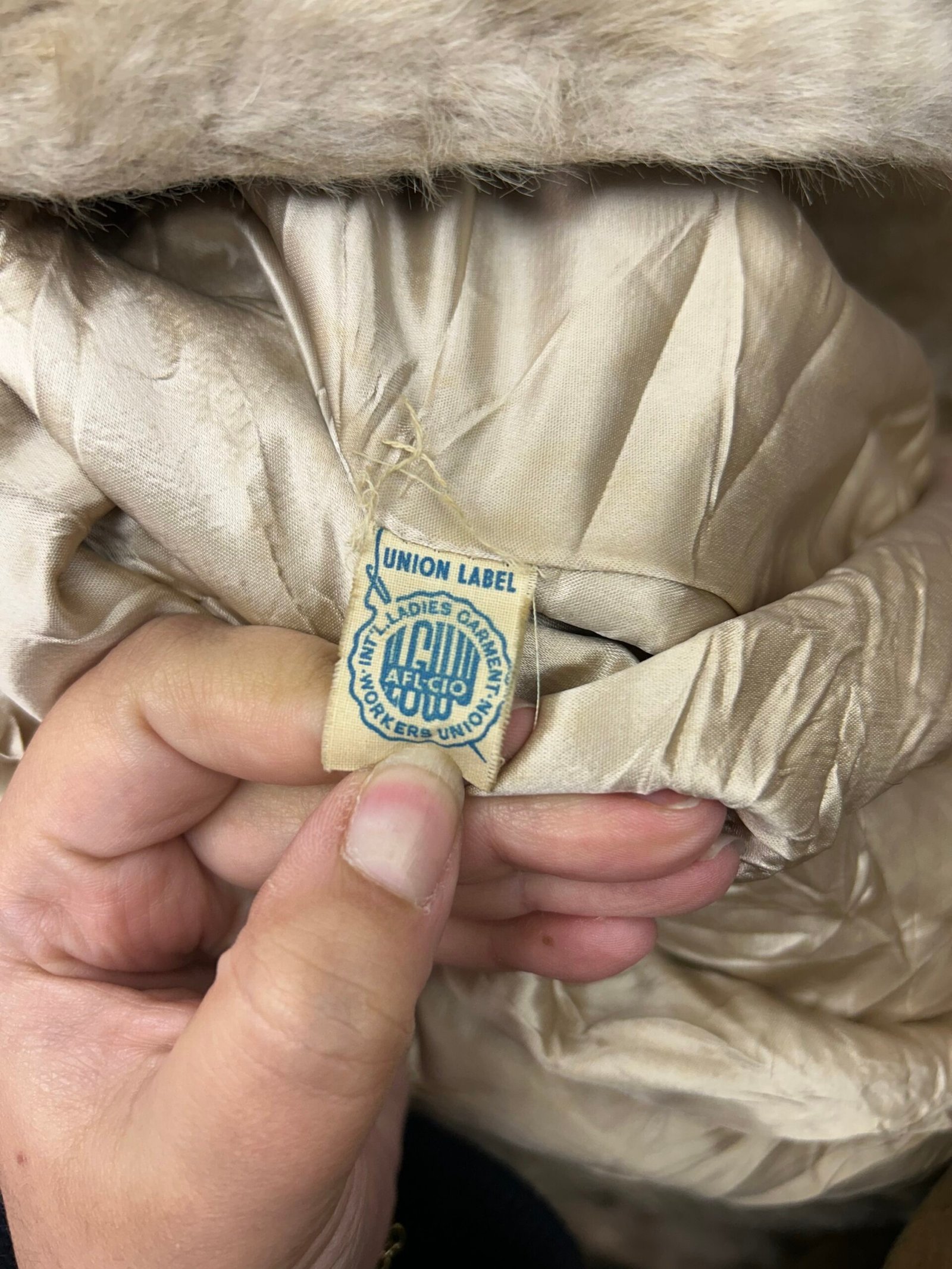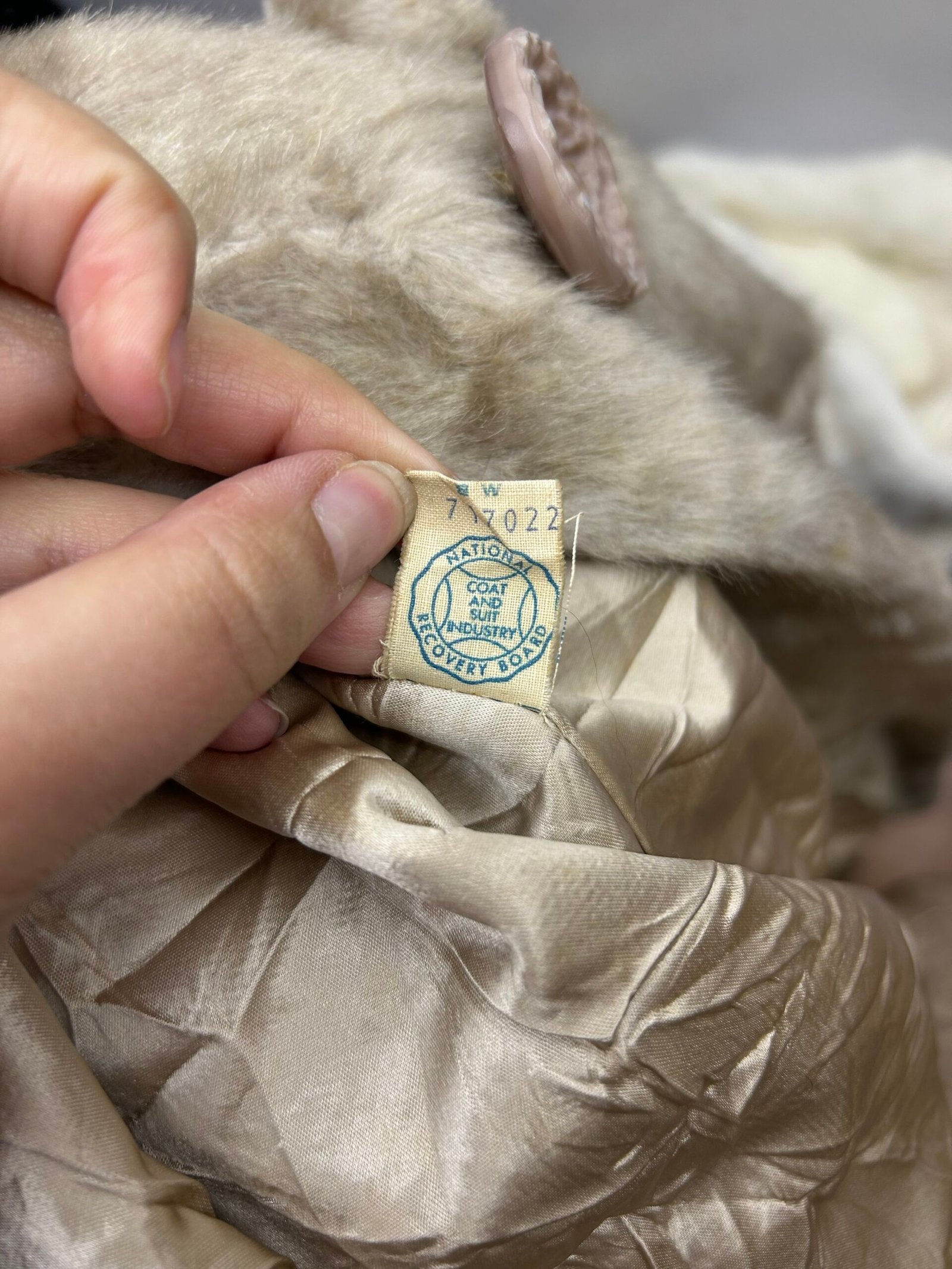 All’interno presenta i marchi ILGWU e del NATIONAL RECOVERY BOARD coat and suit industry, questi due marchi erano un sindacato dei lavoratori, che garantivano buone condizioni lavorative ed economiche a chi lavora nella produzione di questi capi