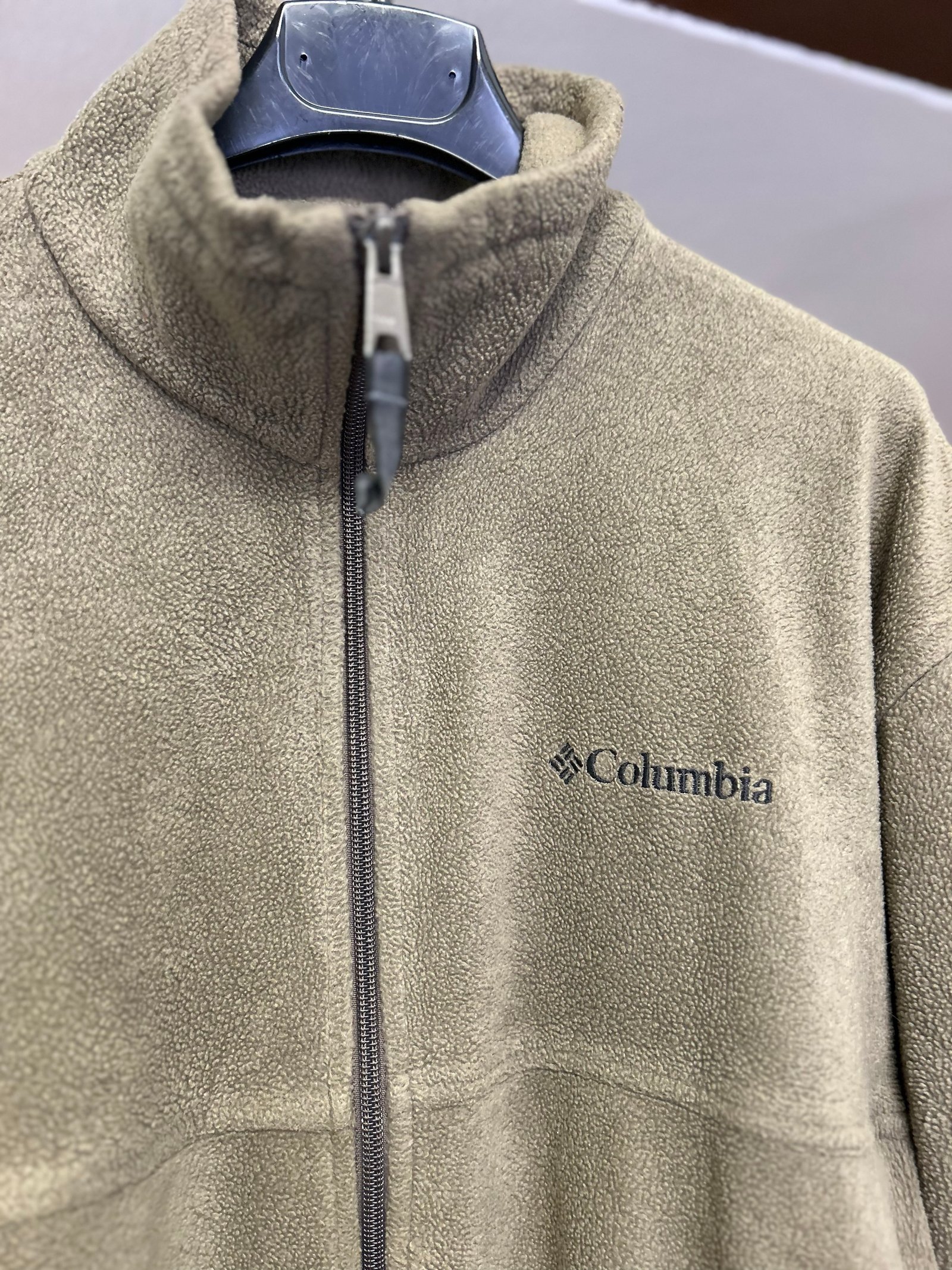 Modello aperto con zip e tasche, con logo sul petto e dietro il collo, in tinta unita beige