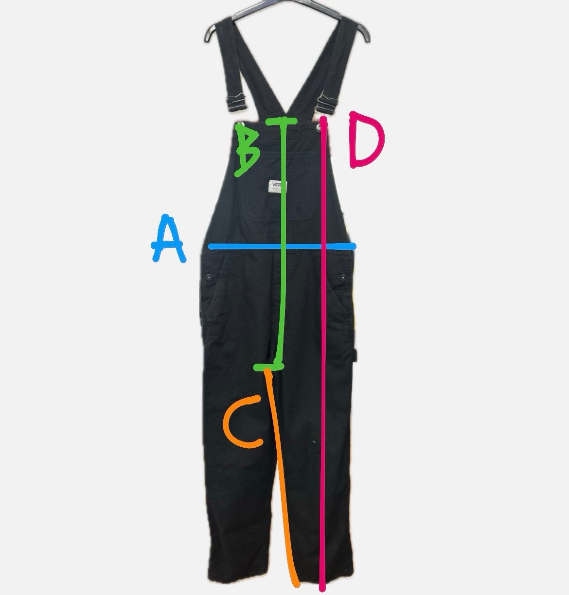 Siccome le misure per le salopette sono diverse da altri articoli, nella 2 foto trovate i punti esatti dove misurarla per regolarvi