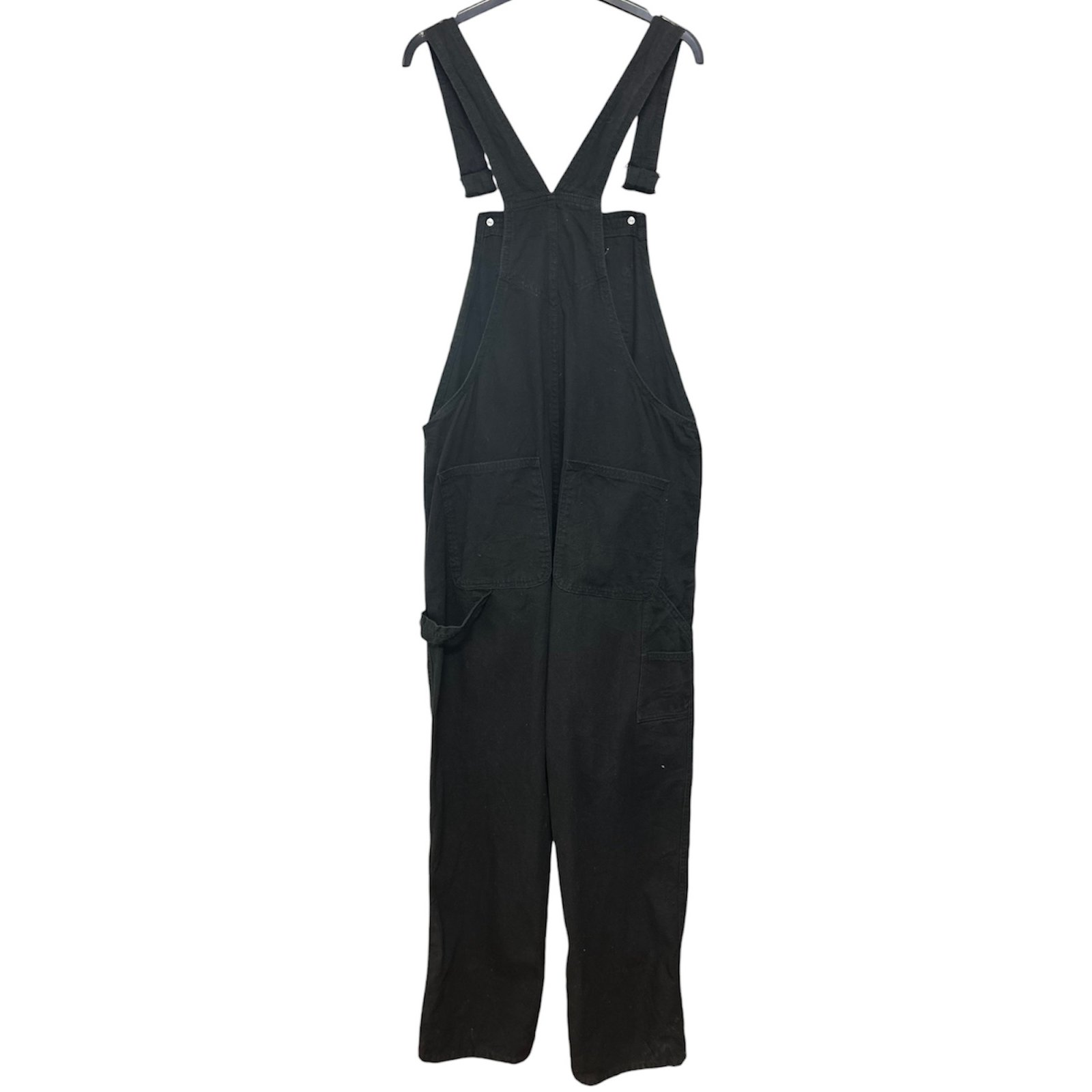 Modello classico in tinta unita nero, con bottoni di lato e bretelle regolabili