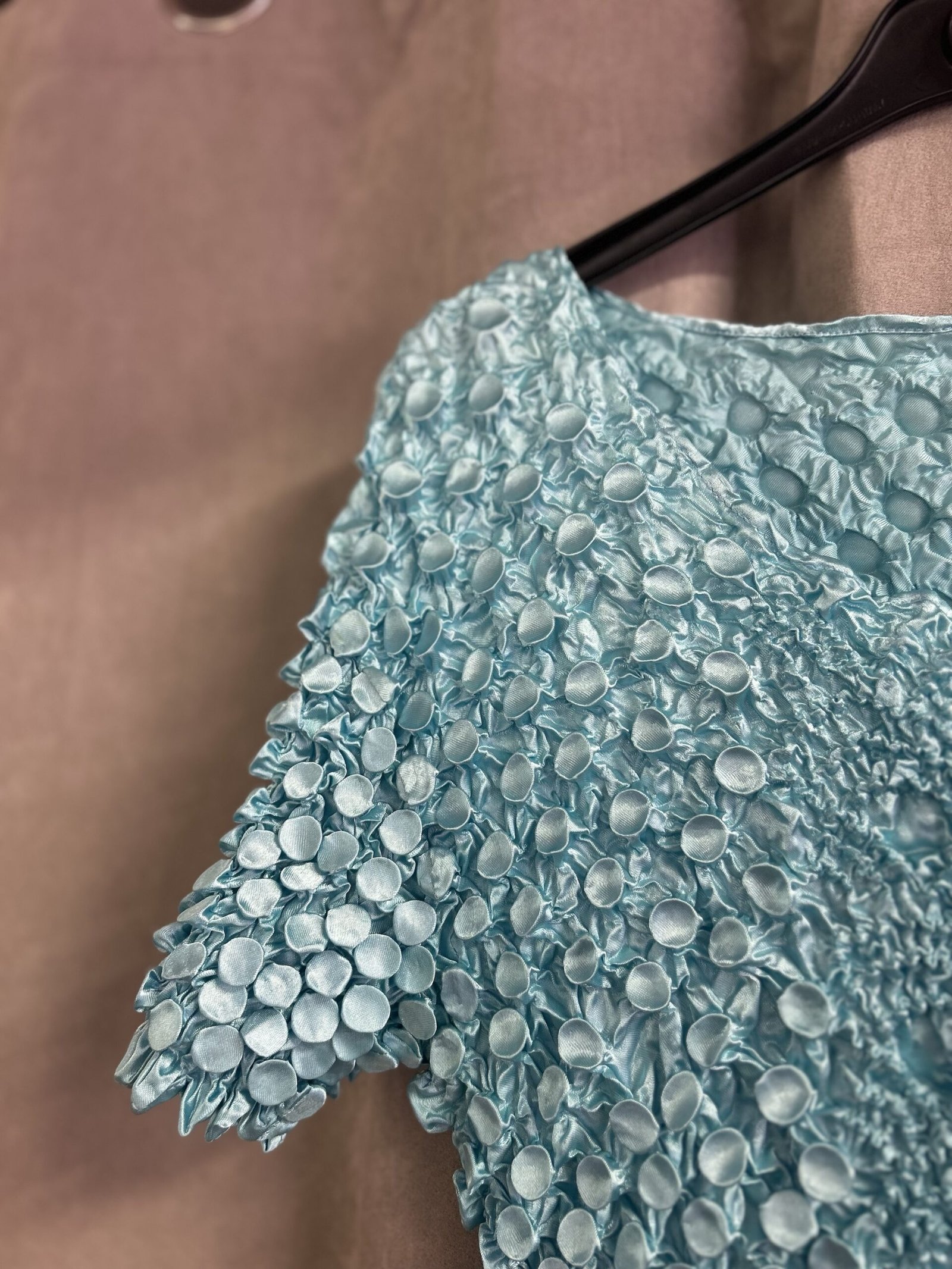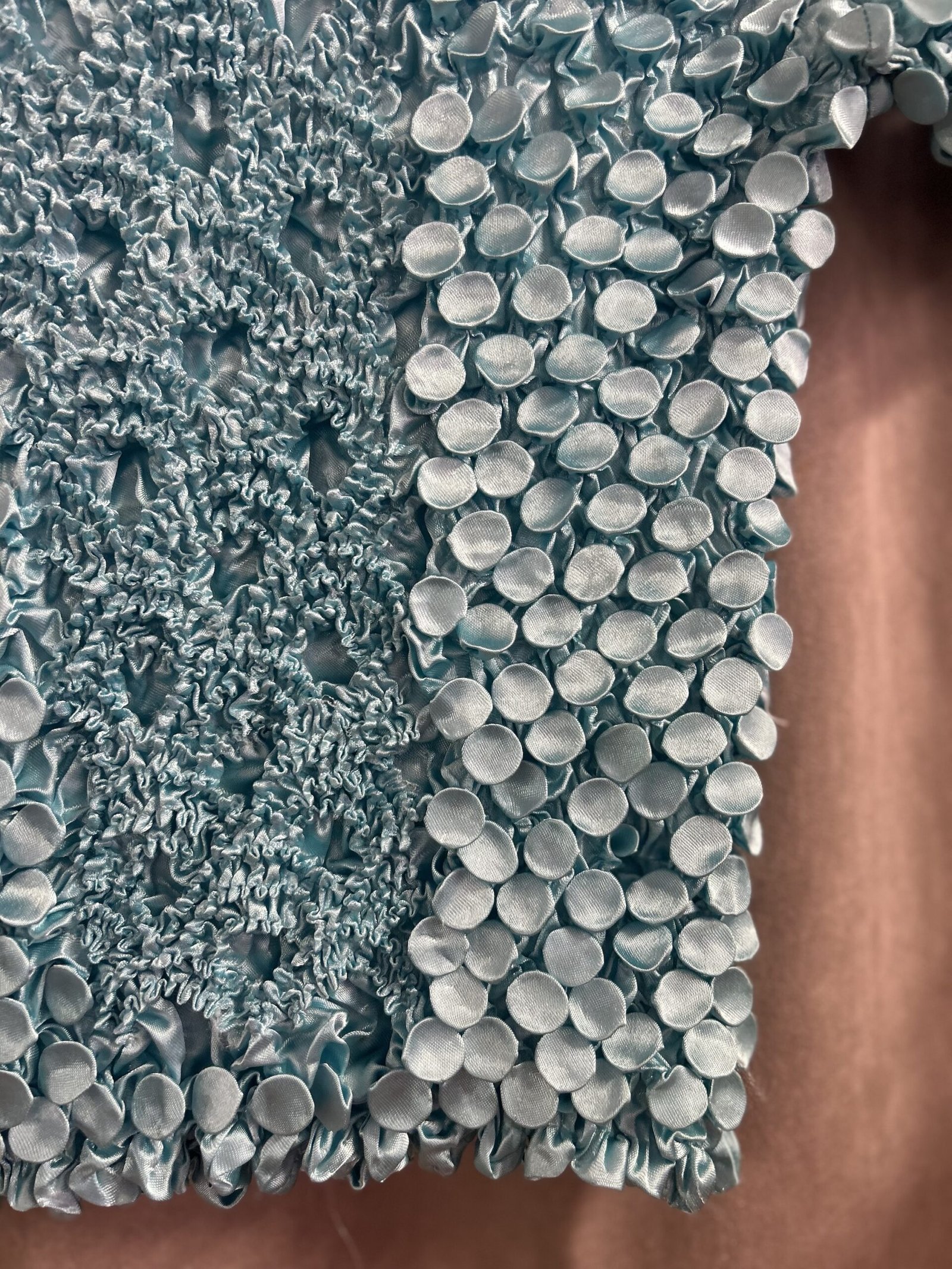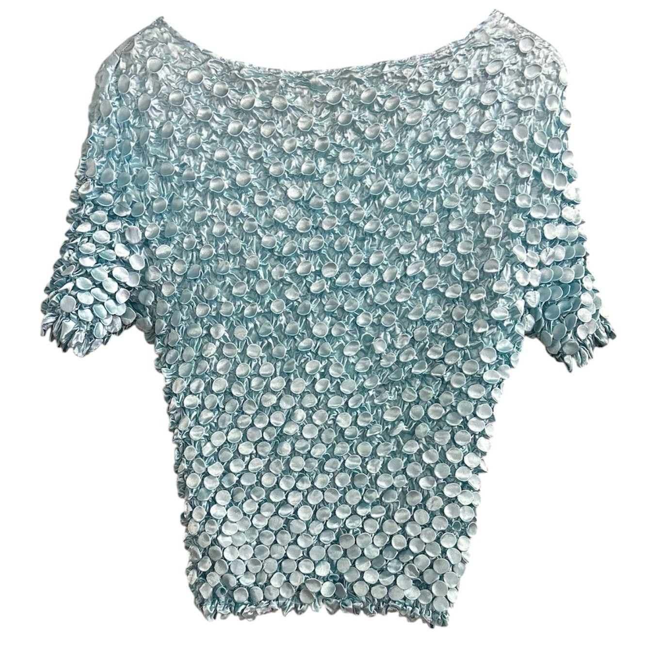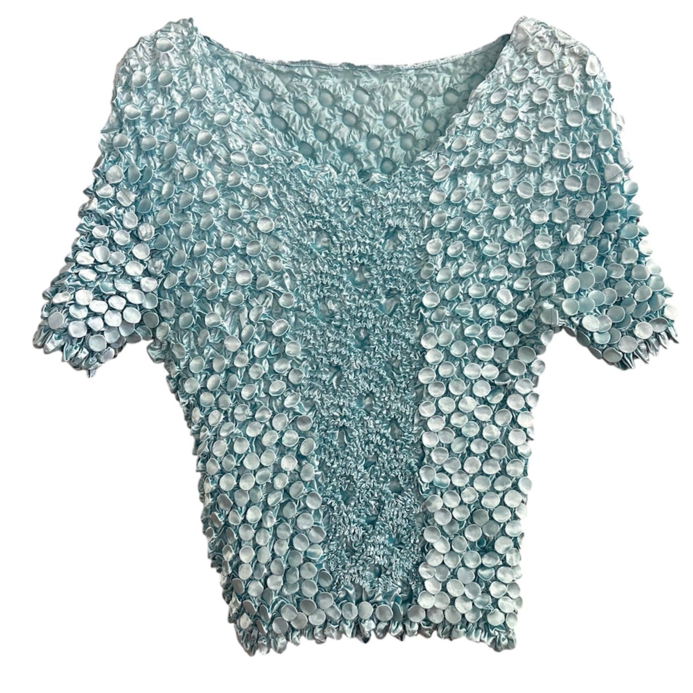 In pieno stile Y2K questo iconico top è fatto per essere indossato da tutte le taglie, grazie a questo ricamo in rilievo che somiglia a dei popcorn si allarga e ristringe a piacere, tornando poi della forma originale