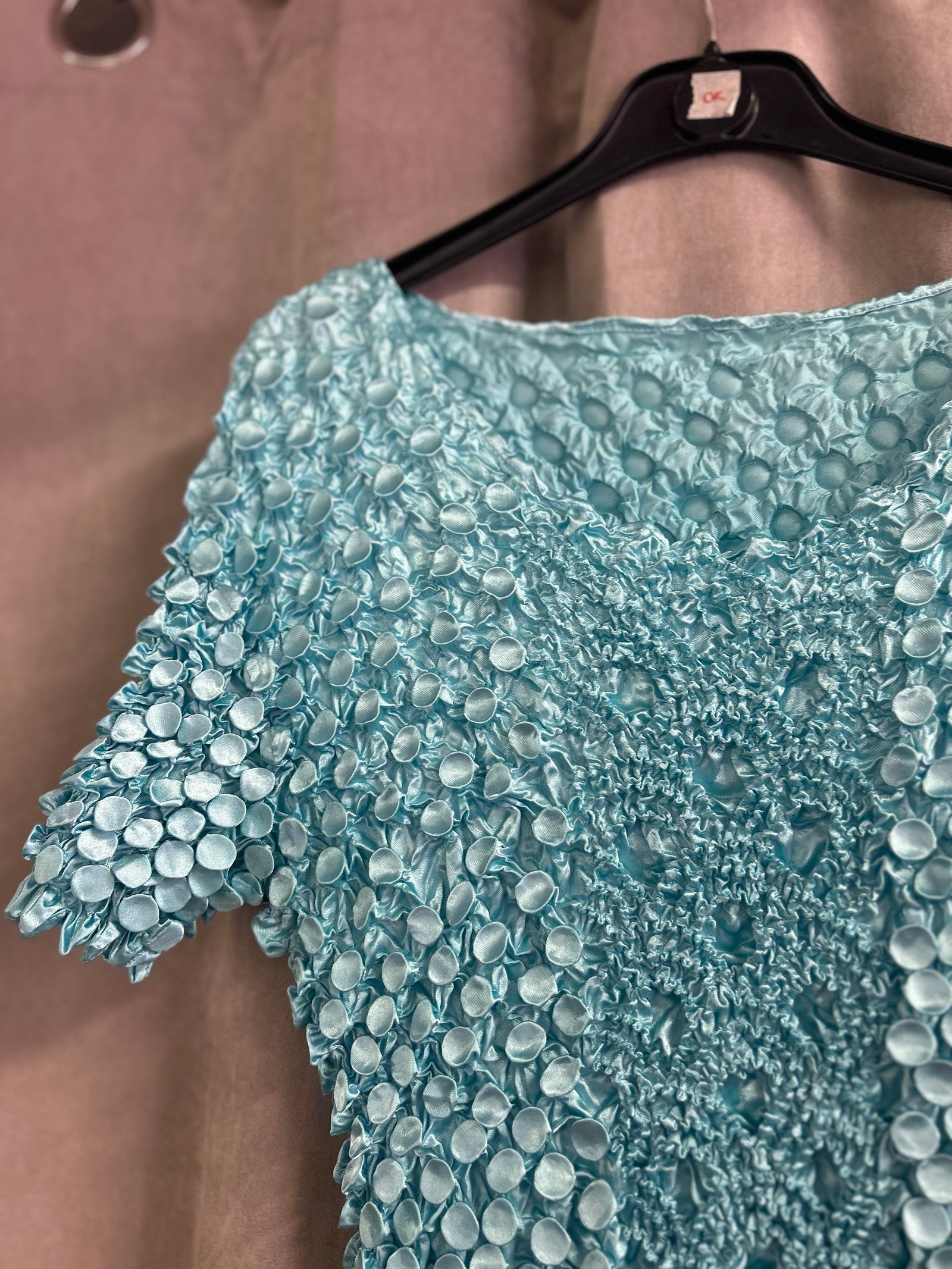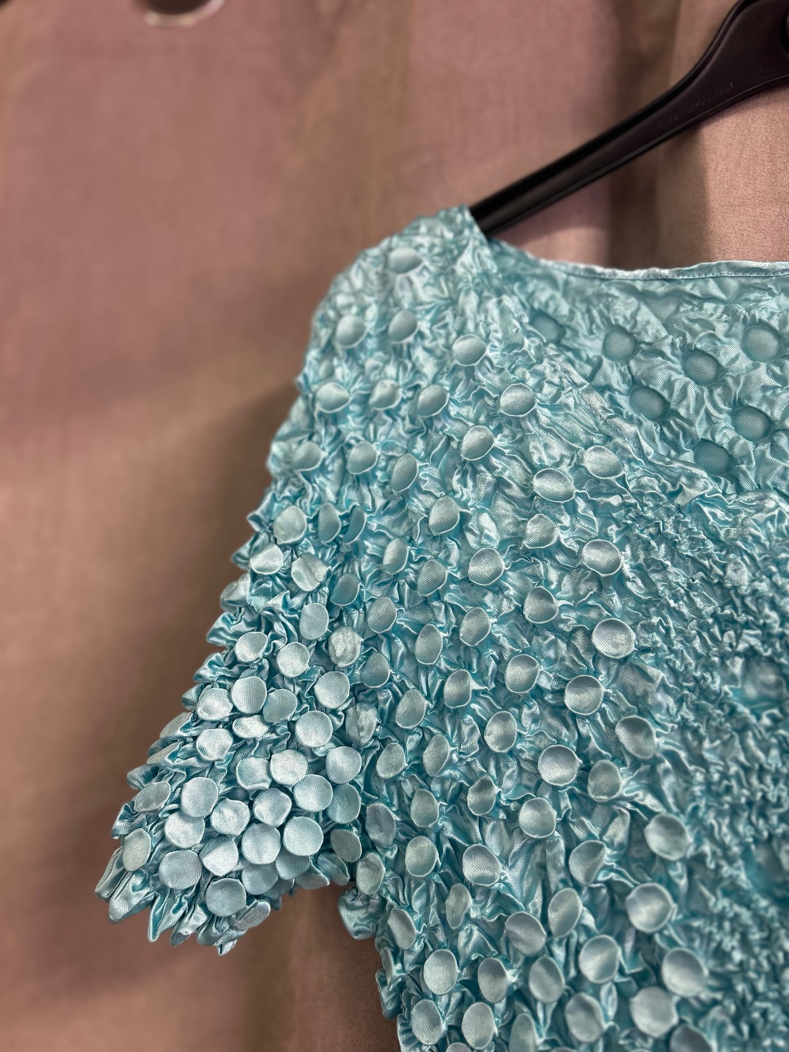 In pieno stile Y2K questo iconico top è fatto per essere indossato da tutte le taglie, grazie a questo ricamo in rilievo che somiglia a dei popcorn si allarga e ristringe a piacere, tornando poi della forma originale