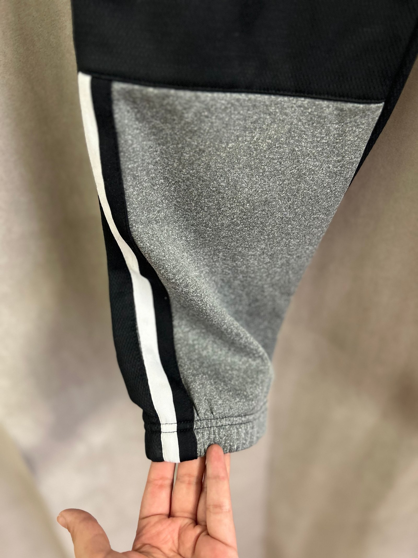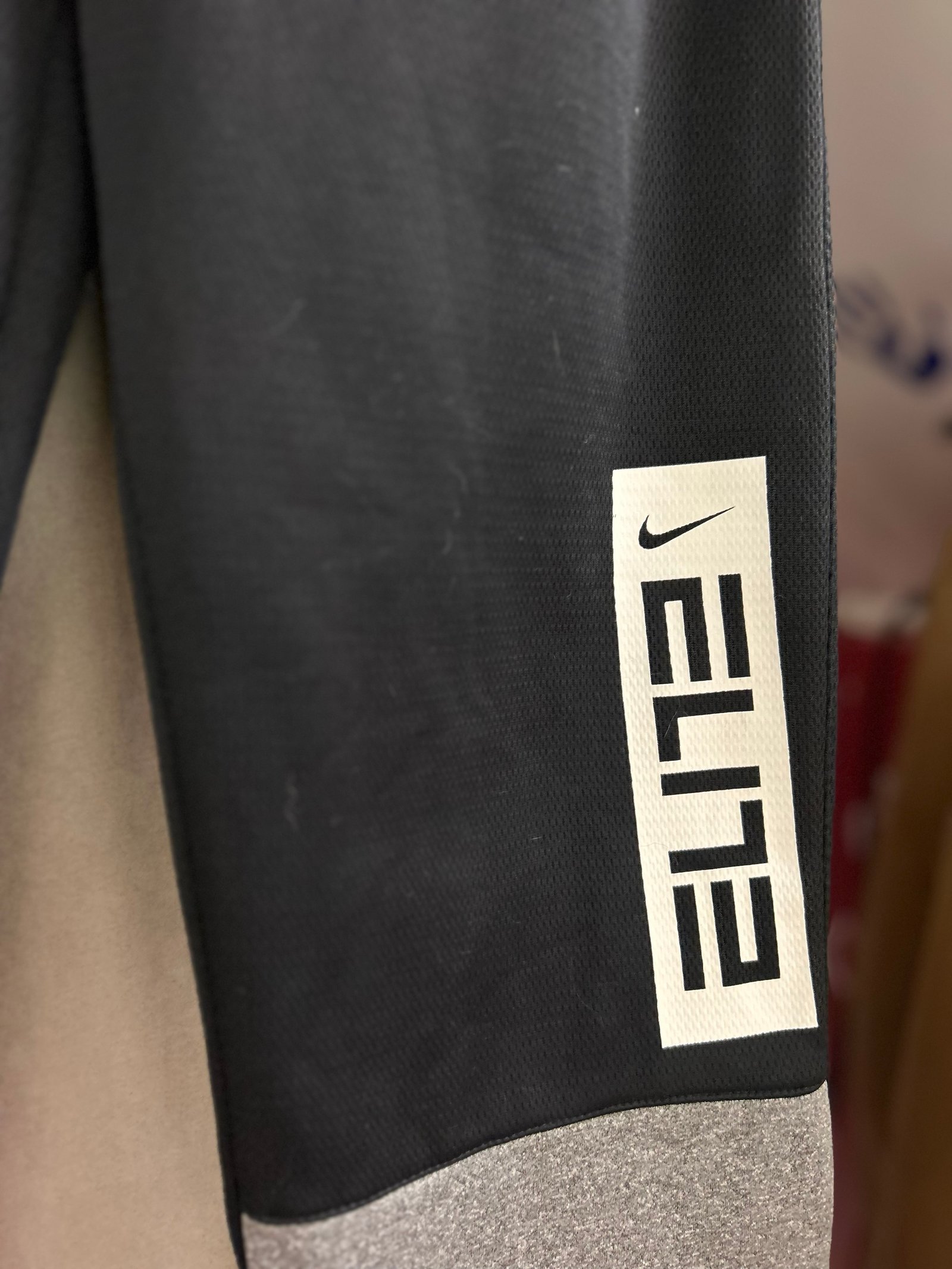 Nera con parte finale della gamba grigia, logo élite stampato in fondo alla gamba, con tasche, ed elastico in vita con lacci interni per stringerla